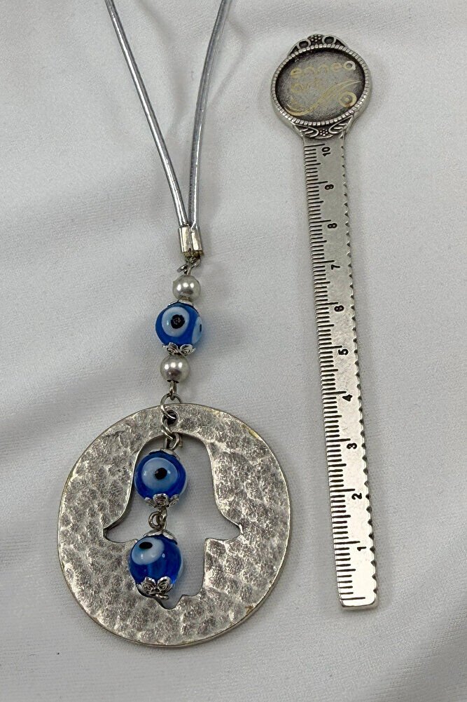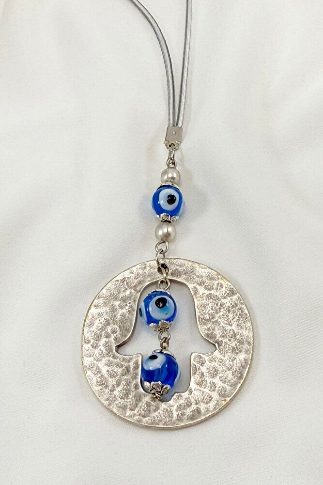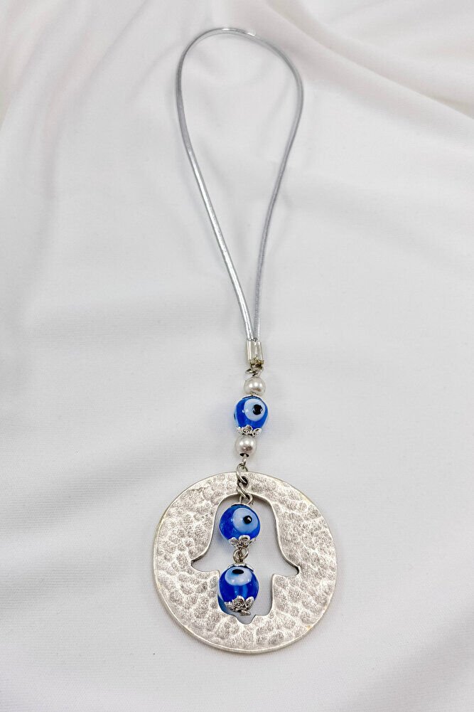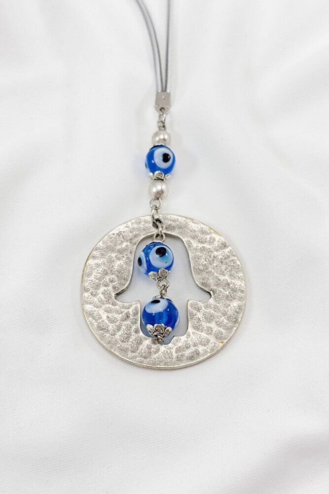 Handmade Glass Evil Eye Bead Metal Hamse Car Rearview Mirror Ornament, Luxury New Car Gift