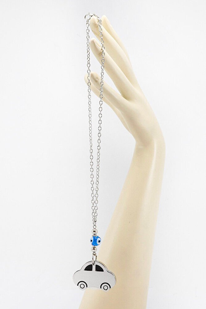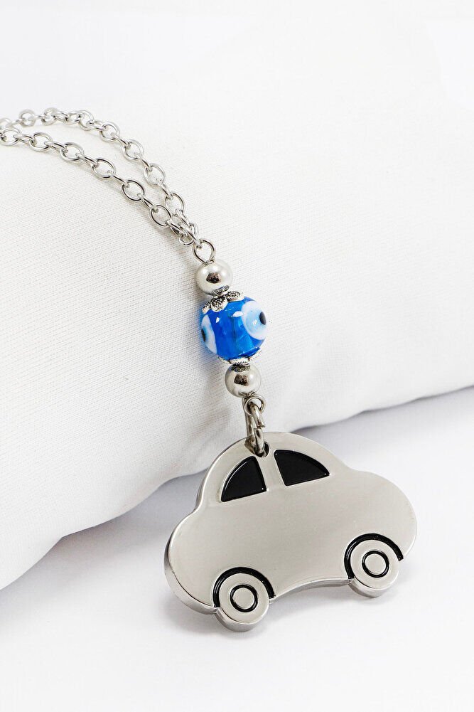 El Yapımı Cam Nazar Boncuklu Ayarlanabilir Zincirli Çelik Araba Figürlü Araç Dikiz Ayna Süsü