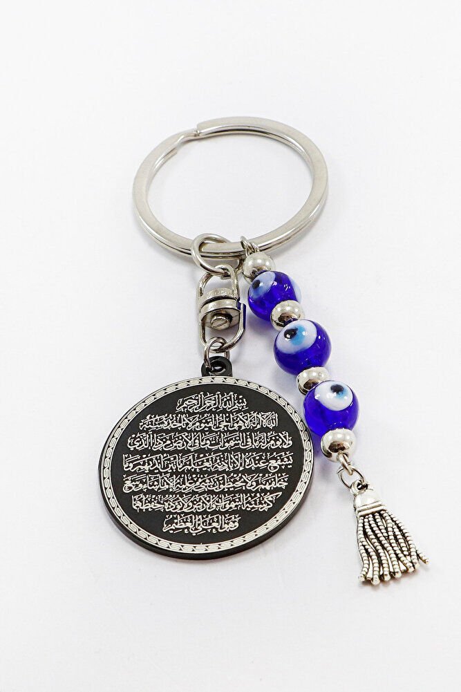 Handmade Glass Evil Eye Beaded Black Steel Double Sided Ayetel Kursi Felak Nas Ihlas Keychain