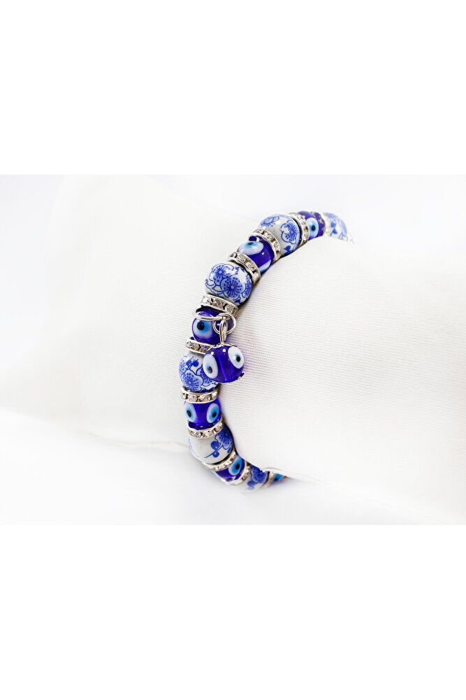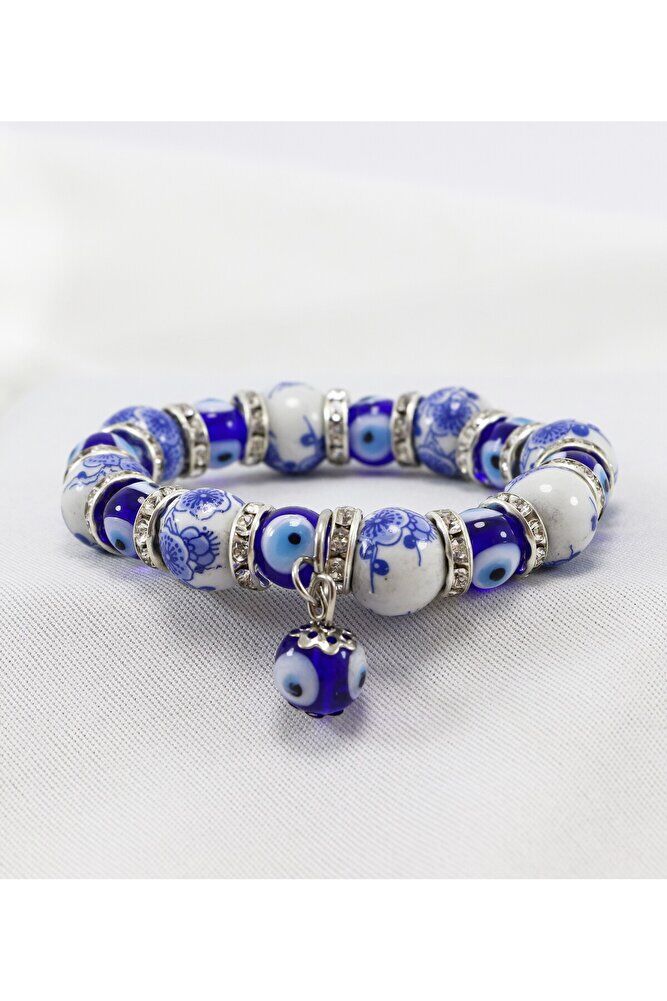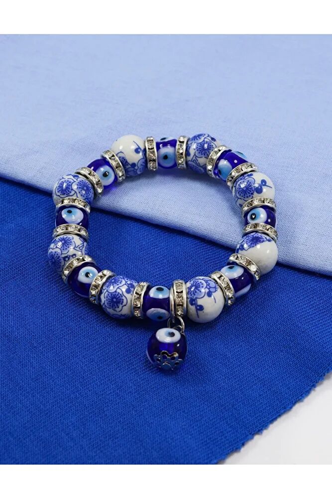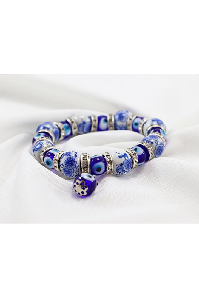 The product is a special handmade design.; Evil Eye Beads are glass.; The product is double-sided and elastic.;