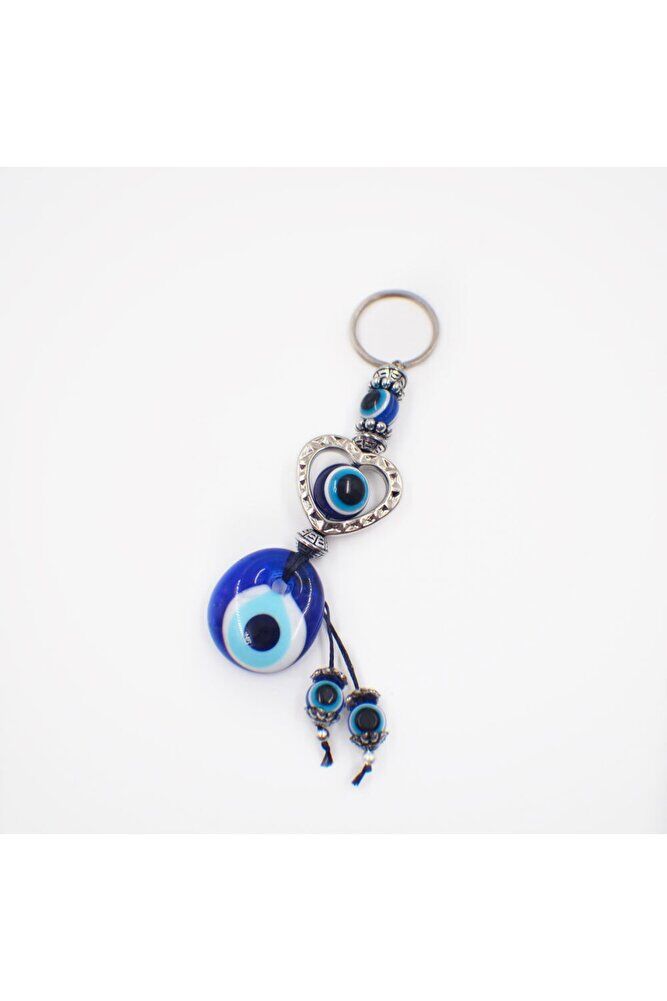 This keychain, which is the choice of those looking for a stylish and special accessory with its heart detailed design adorned with handmade glass evil eye beads, adds an elegant touch to any outfit.; Drawing attention with its eye-catching glass evil eye bead and heart details, this keychain blends both modern and traditional styles and offers a unique aesthetic to its user.; Being handcrafted, each piece has a different and original look, thus standing out as an individual piece in your collection.; Thanks to its durable structure, this keychain, which you can use safely for many years, is designed to meet your expectations in terms of both functionality and aesthetics.; Thanks to its useful design, it allows you to store your keys neatly; it can also be considered as a meaningful gift alternative that you can share with your loved ones.;