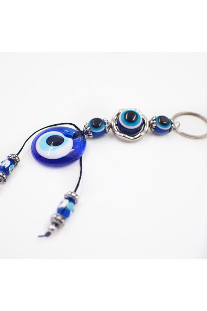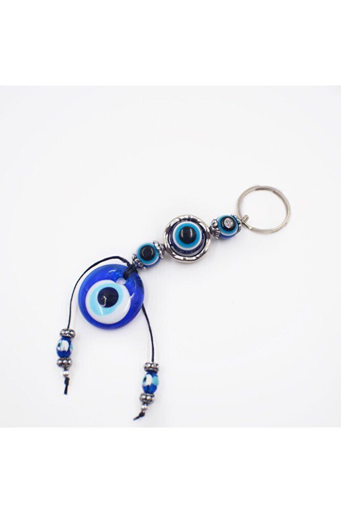 Handcrafted glass evil eye bead detailed keychain, each of which attracts attention with its unique and unique design.; A stylish and useful accessory with its eye-catching colors and elegant patterns.; Made of high-quality glass material, the evil eye bead offers durability and long-lasting use.; It is an ideal accessory that can be given as a gift on special occasions or for personal use.; With its classic and modern design, it complements your style by matching with any outfit.;