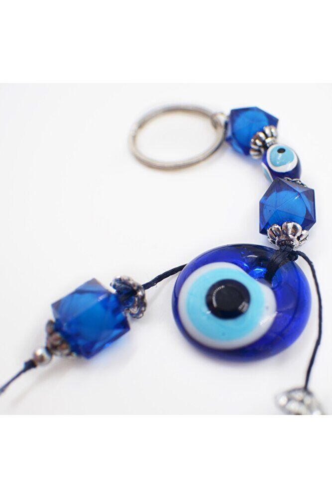 - Handmade glass evil eye bead keychain is an ideal option for those looking for a unique and original accessory; - Glass evil eye beads both offer a stylish look and invite positive energy in your home; - This handcrafted keychain prioritizes quality and aesthetics in every detail; - Thanks to its useful design, it allows you to carry your keys regularly and prevents them from getting lost; - This product, which can also be preferred as a gift, offers a special and meaningful gift alternative for your loved ones;