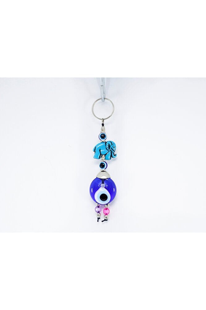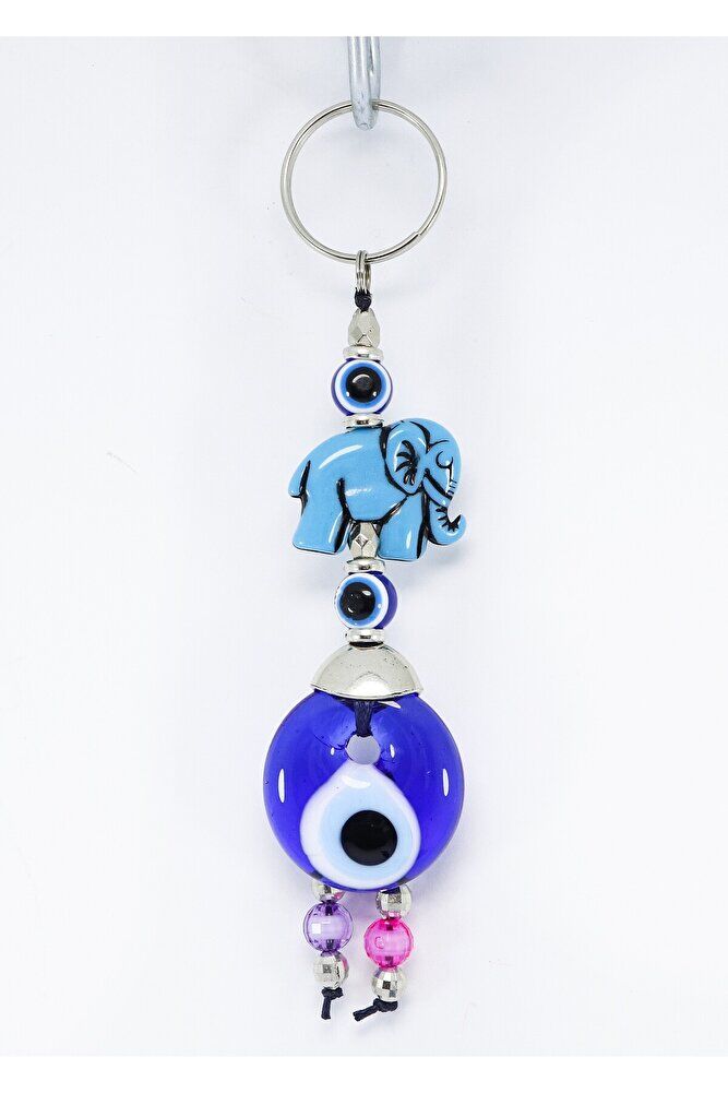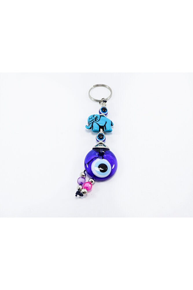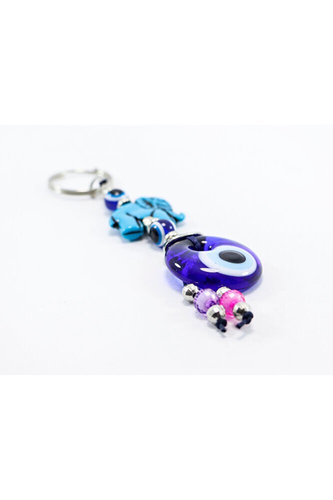 Handmade Glass Evil Eye Beaded Keychain with a Mini Elephant Figure, Gift Keychain