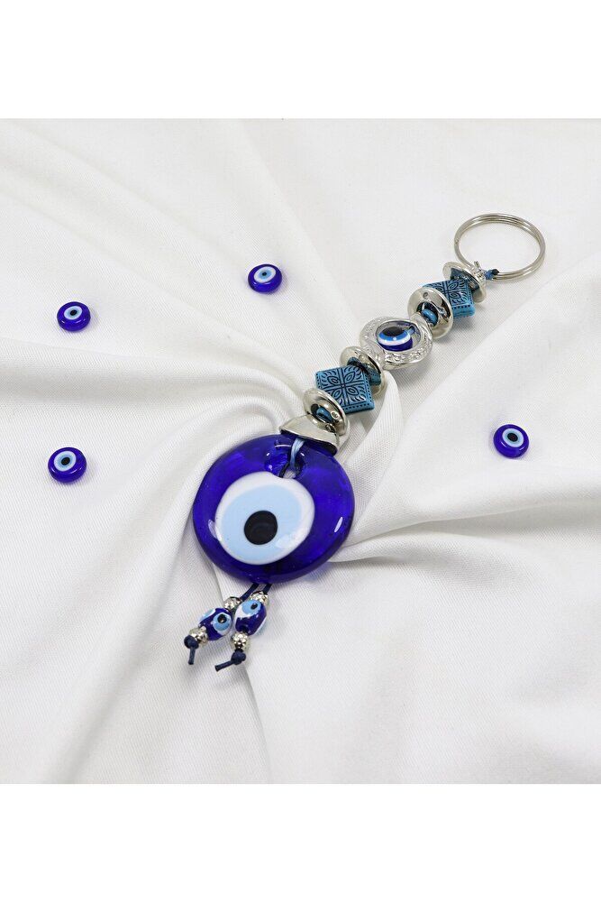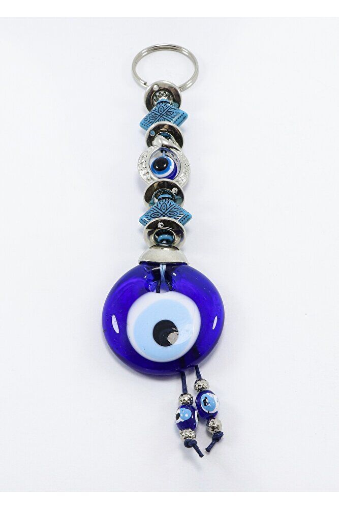 Çerçeveli Nazar Desenli El Yapımı Cam Nazar Boncuklu Anahtarlık, Hediyelik Anahtarlık