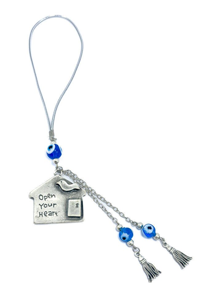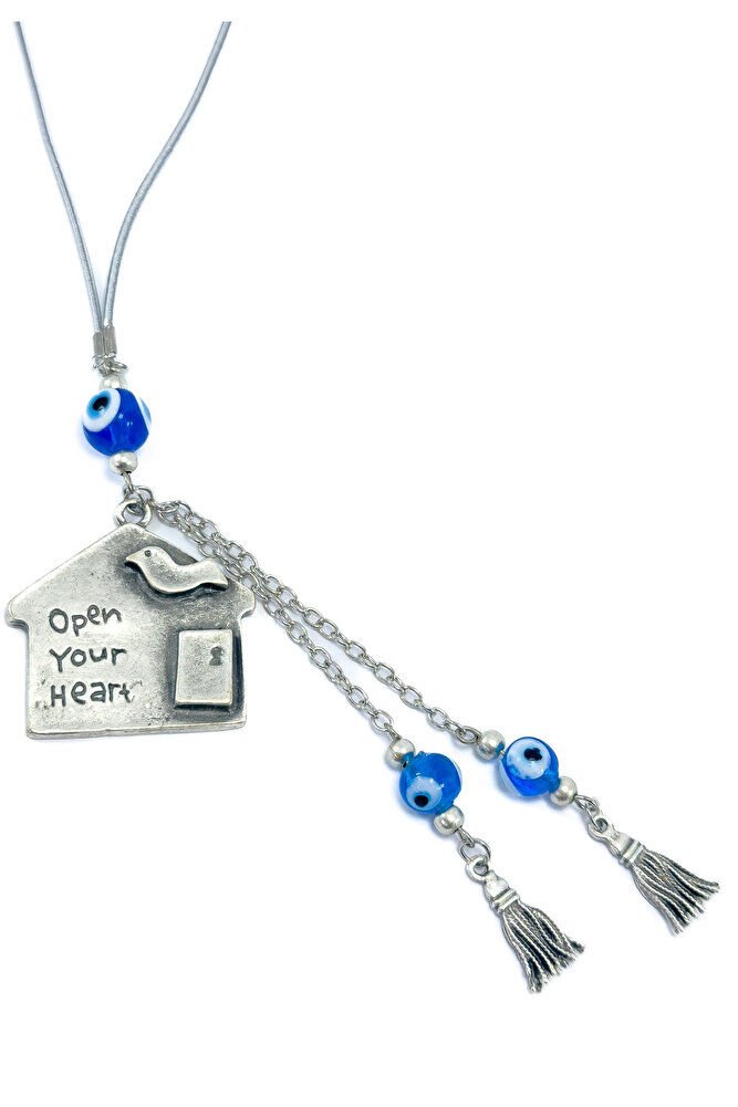 The product is handmade.; Since it is handmade, slight differences and modifications are possible.; The rope is elastic.; Since it is elastic, it can be easily installed on any model of vehicle.; The evil eye bead is handmade glass.; It is antiqued metal and single-sided.; The tassels are metal.;