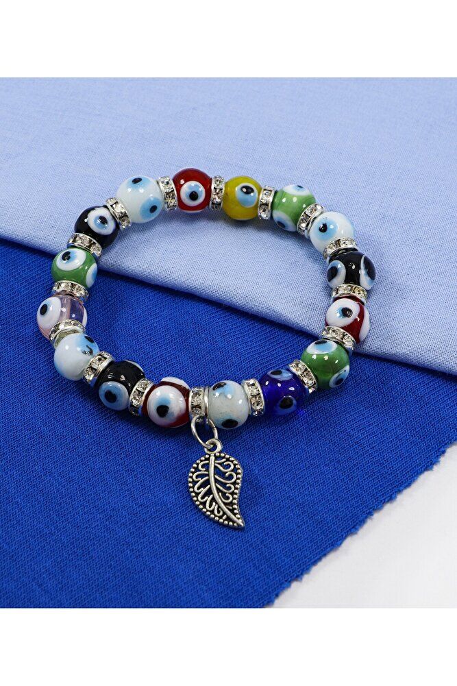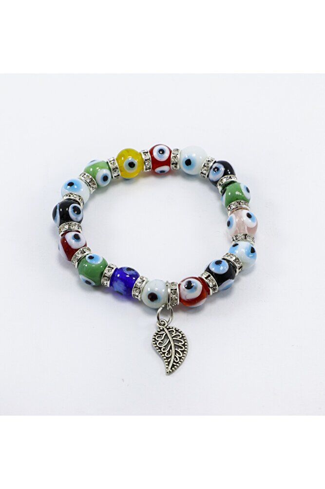 Handmade Glass Evil Eye Beaded Metal Leaf Bracelet, Evil Eye Beaded Bracelet for Gift