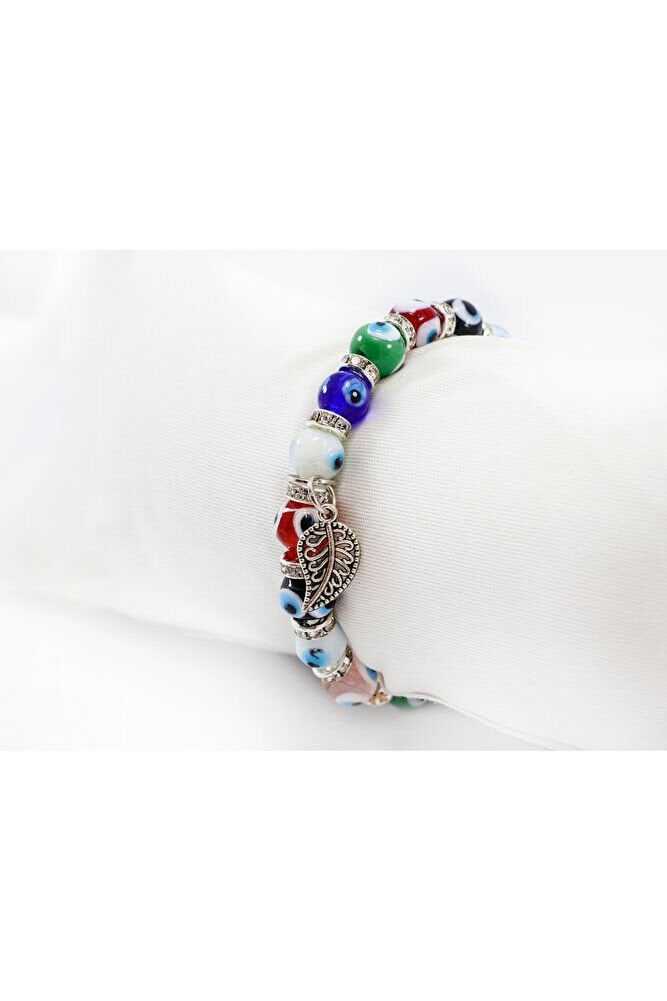 The product is a special handmade design.; Evil Eye Beads are glass.; The product is double-sided and elastic.;