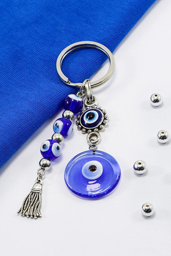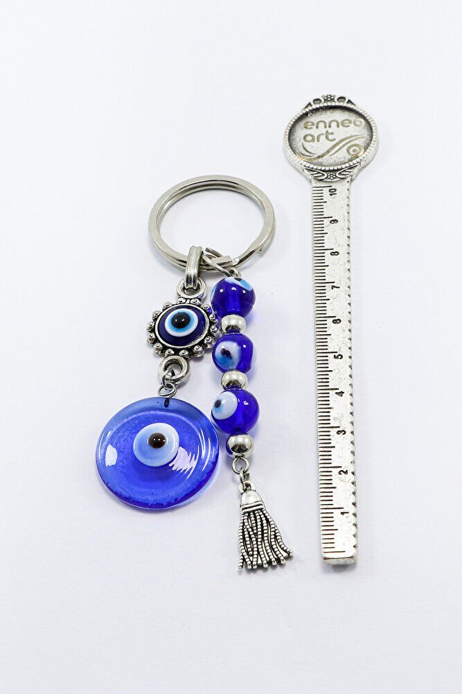 ALL PRODUCT PHOTOGRAPHS BELONG TO ENNEA ART AND ARE ORIGINAL WORKS.; UNAUTHORIZED USE, COPYING OR DISTRIBUTION IS STRICTLY PROHIBITED.; LEGAL ACTION WILL BE INITIATED IF NECESSARY.; The product can be used both as a keychain and as a bag ornament.; The glass evil eye bead is handmade and single-sided.; The pendant evil eye beads are glass.;