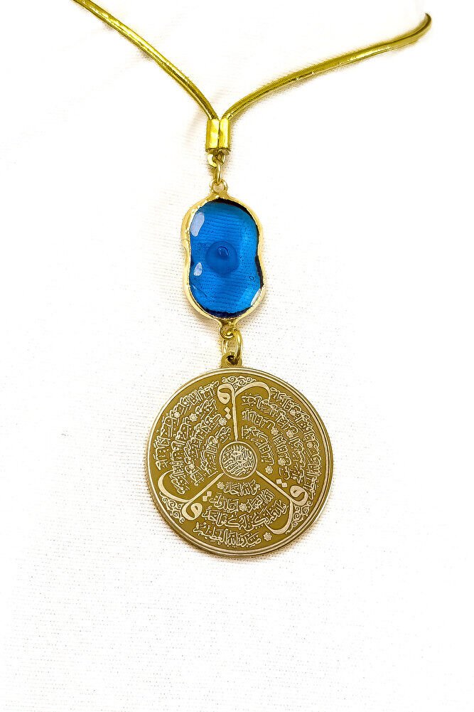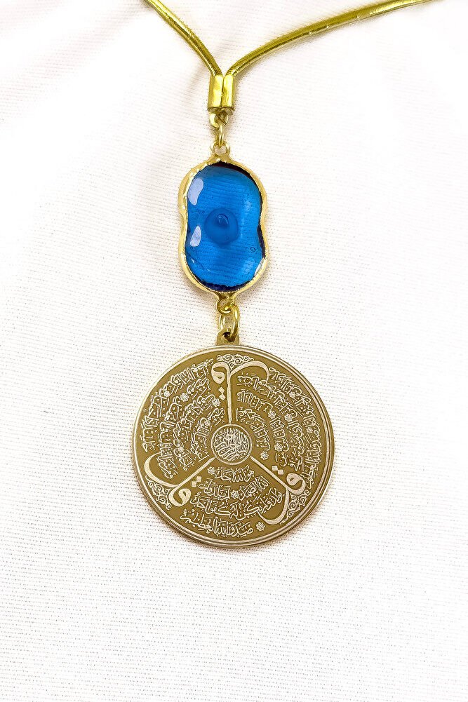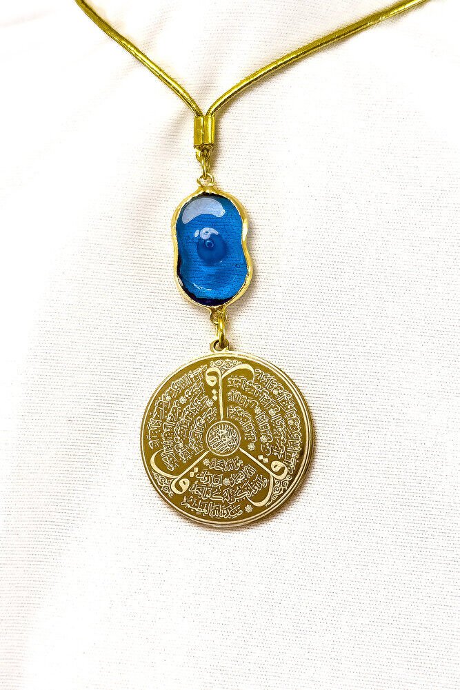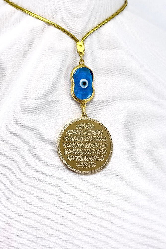 Prayers are permanently engraved with laser engraving technique.; Handmade framed evil eye is single-sided.; The product is handmade and slight differences and irregularities are possible because it is handmade.; The rope is elastic.; Because it is elastic, it can be easily attached to any model.; The plate is gold-colored stainless steel.; The connecting materials are durable gold-plated.; The steel plate measures 3.5 cm.; The plate is double-sided.; Ayetel Kursi is written on one side and Falak Nas Ikhlas on the other.; Surahs Falak, Nas and Ikhlas are important prayers that are read for protection and spiritual strength in the Islamic faith.; It is believed that Surahs Falak and Nas are read especially for protection from the evil eye, the evil eye and satanic influences.; Surah Falak provides protection against dark forces, while Surah Nas provides protection from negative thoughts and harmful energies.; Surah Ikhlas expresses the unity and limitless power of Allah, and it is believed that this surah brings spiritual peace and protection under His protection. These surahs are frequently recited for those seeking security and peace and are believed to be of great benefit to those seeking spiritual balance. Ayetel Kursi is considered one of the most powerful and protective prayers in the Islamic faith. Ayetel Kursi is a verse that expresses the greatness and sovereignty of Allah and is frequently recited for protection and spiritual strength. This verse emphasizes that everything in the heavens and the earth belongs to Allah and provides protection from satanic influences. It is believed that reciting it, especially before going to bed at night, is of great benefit in terms of security, protection from harmful energies, and spiritual peace. At the same time, it gives one spiritual comfort and strength through the belief that Allah knows everything and everything depends on Him.