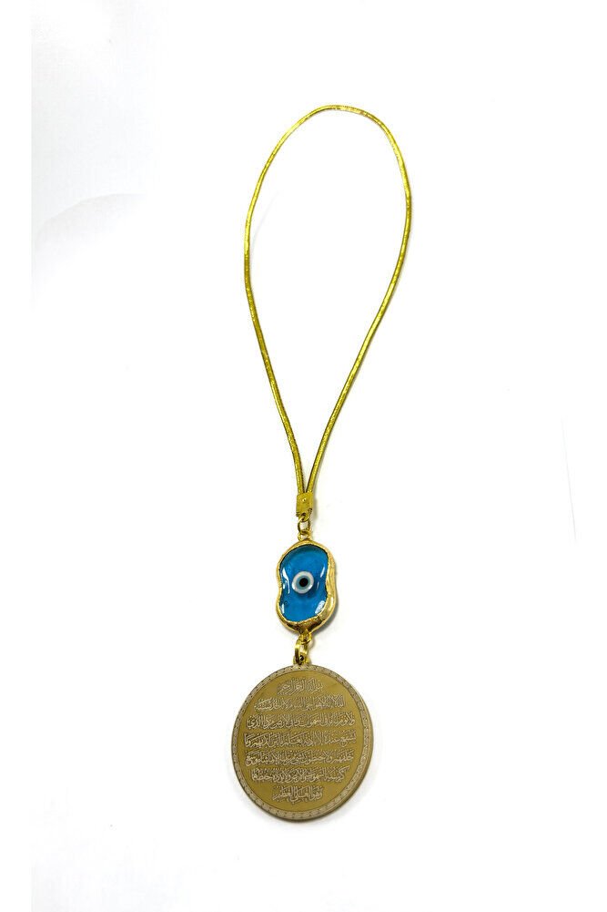 Handmade Glass Evil Eye Gold Steel Double Sided Ayetel Kursi, Felak Nas Ihlas Car Rearview Mirror Ornament
