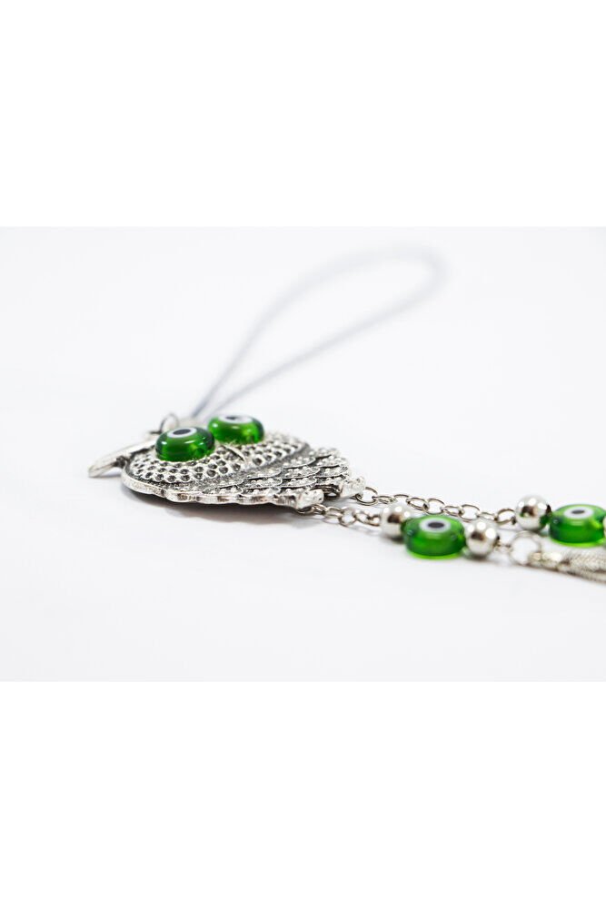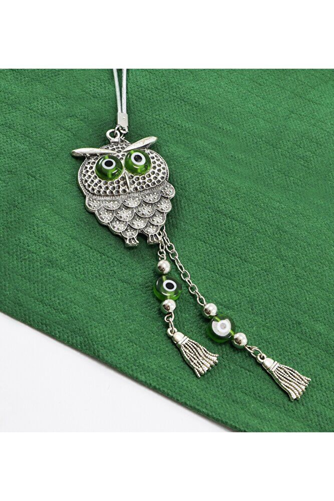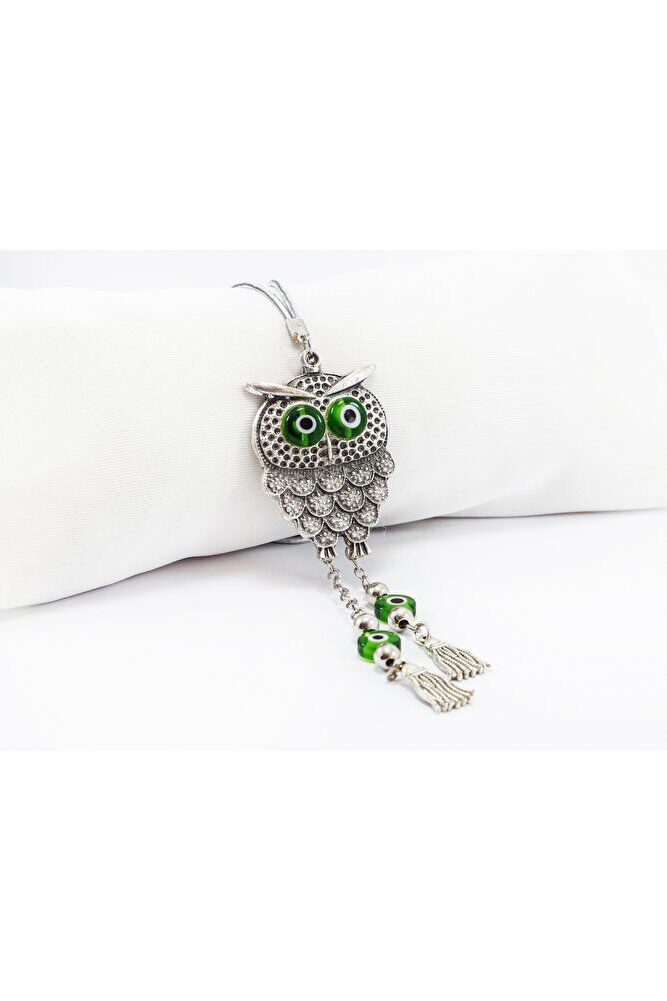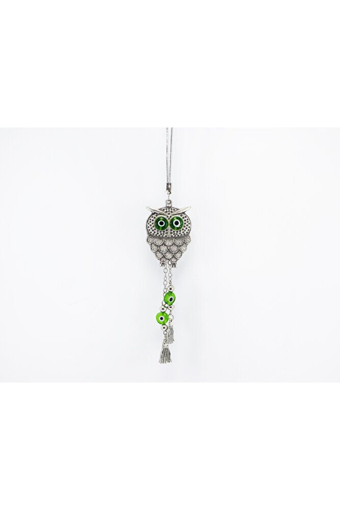 Handmade Green Flat Tasseled Owl Car Rearview Mirror Ornament with Evil Eye, New Car Gift
