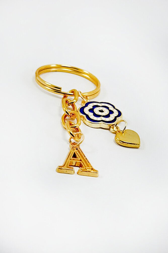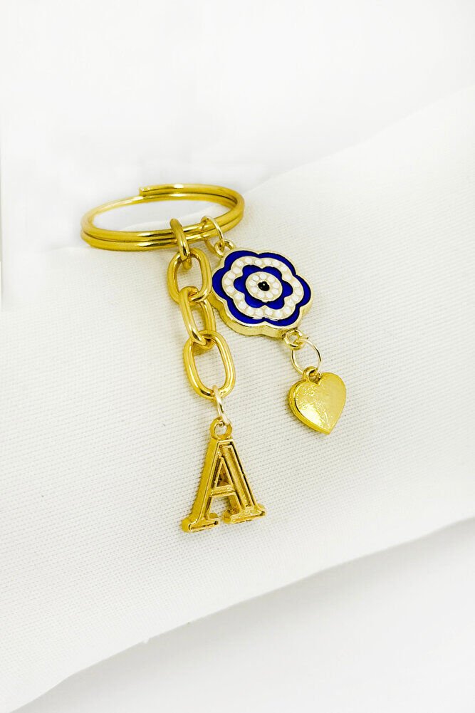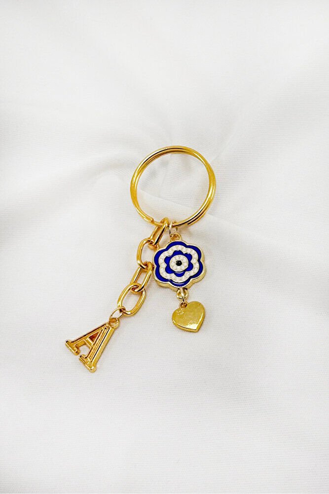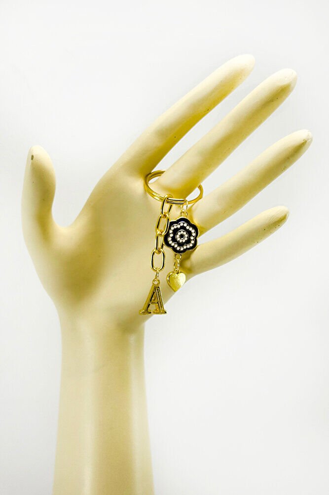 Handmade Letter A Navy Blue Floral Cluster Keychain, Gift Keychain
