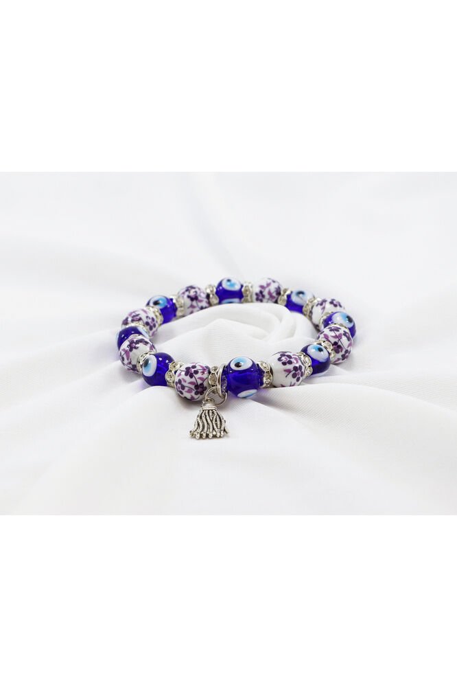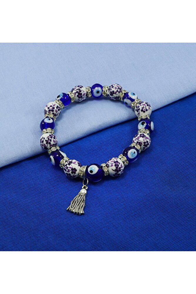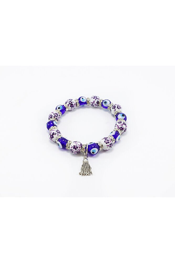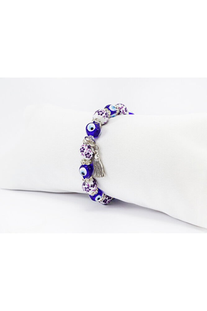 Handmade Patterned Glass Evil Eye Beaded Tassel Bracelet, Evil Eye Beaded Bracelet for Gift