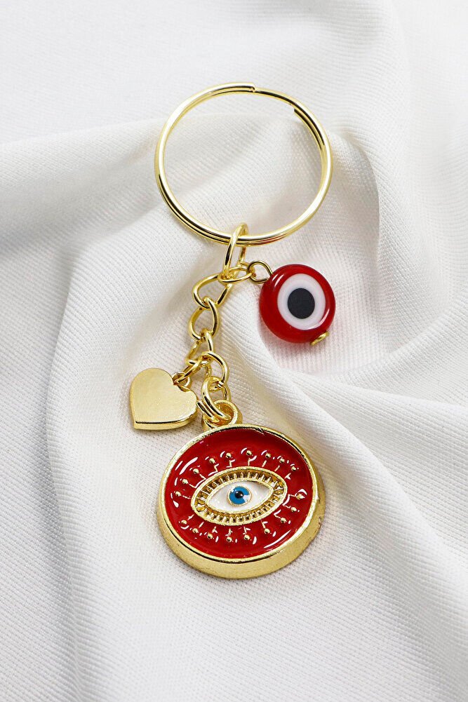 Handmade Red Glass Evil Eye Beaded Necklace Red Eye Figured Keychain