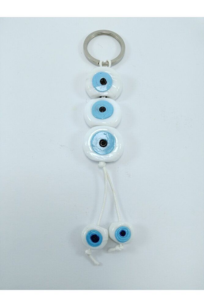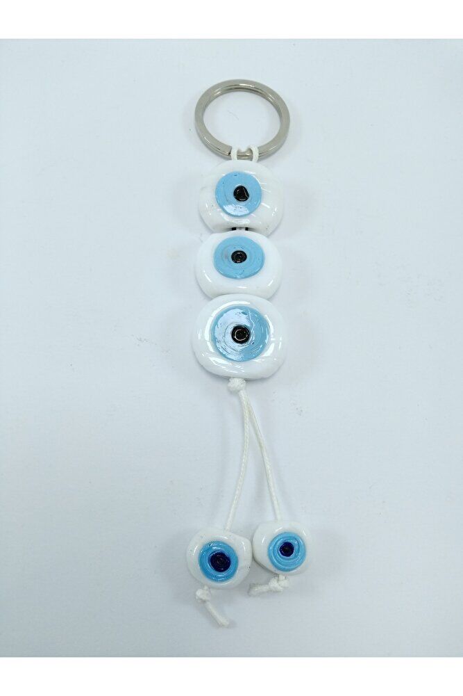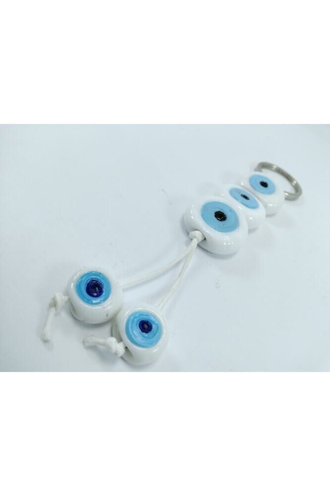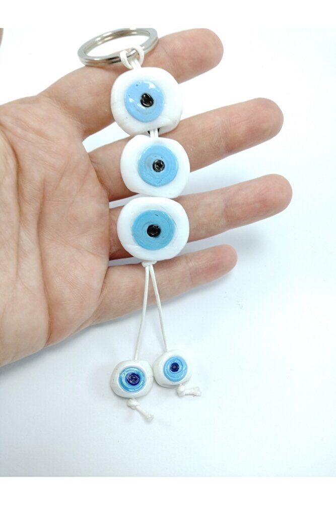 The product is handmade. ; Since it is handmade, slight differences and irregularities are possible. ; The product shown in the image is representative. ; Each product is unique because it is made with handmade beads. ; It is a special gift for your loved ones. ; All beads are made of glass. ; The white string is elastic. ; In Turkish culture, this powerful symbol, traditionally known as the "evil eye bead", is believed to ward off evil and bring good luck. ; Each glass bead is meticulously crafted by skilled artisans, which makes each piece unique. ; We offer the evil eye bead to our customers in different formats such as wall ornaments, keychains, car accessories, door ornaments, and magnets. ; Hang it in your home, car or office to bring positive energy and protect against the evil eye. ; The evil eye talisman has different names in various cultures around the world. ; It is known as "aynal-hasud" or "eye of envy" in Arabic, and "mati" in Greek. ; Whatever its name, belief in the power of the evil eye bead is universal.