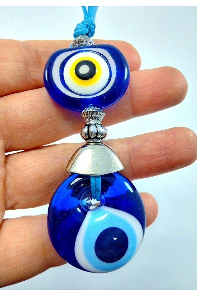 Iki Gözlü Araba Dikiz Ayna Süsü Cam Nazar Boncuğu El Yapımı Hediyelik Eşya