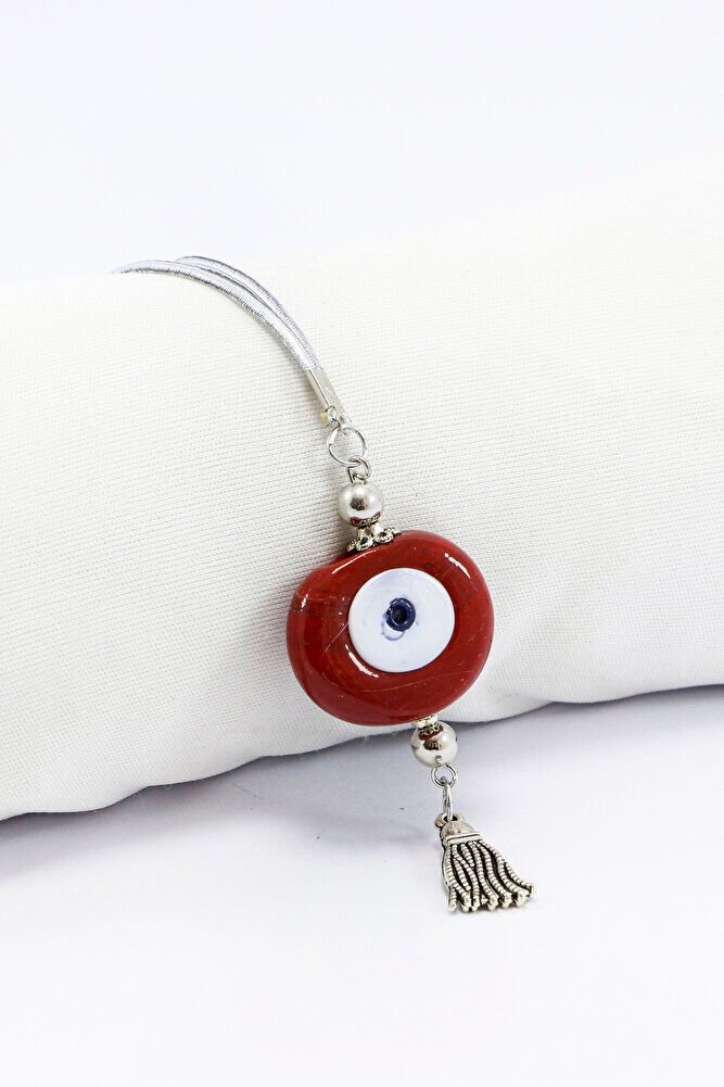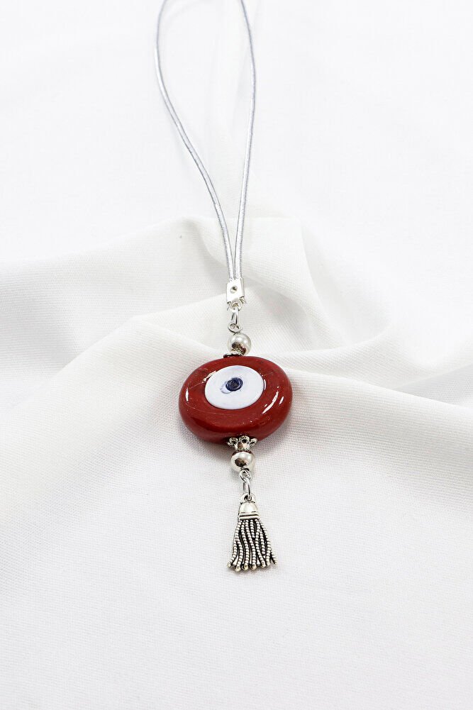 Kırmızı Nazar Boncuğu Araba Dikiz Ayna Süsü, El Yapımı Cam Danagözü PÜsküllü