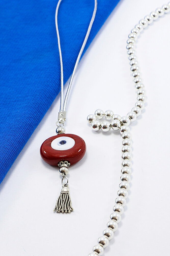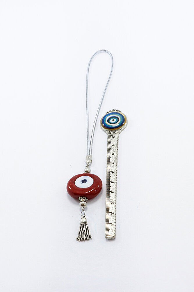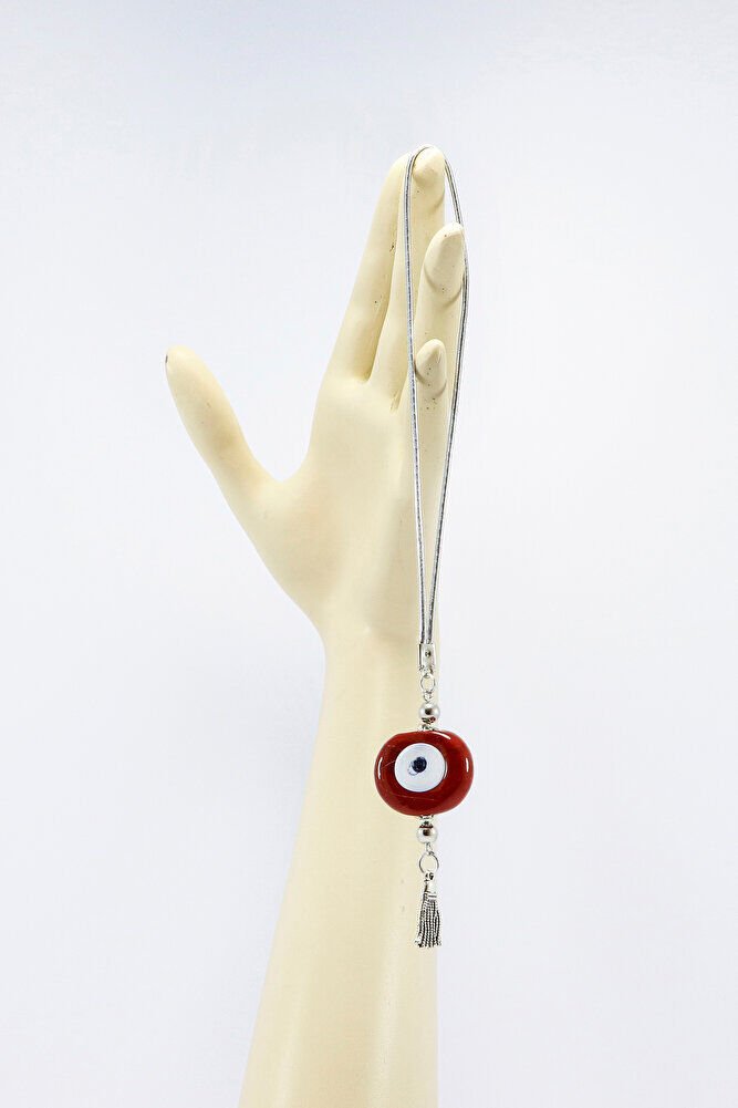 Ürün el yapımıdır.; ; Büyük cam boncuk 2-2,5 cm boyutundadır.; ; Gümüş renkli ip esnektir.; ; El yapımı olduğu için ufak farklılık ve düzensizlikler olasıdır.; Püskül metaldir.; Türk kültüründe geleneksel olarak"nazar boncuğu" olarak bilinen bu güçlü sembolün kötülükleri savuşturduğuna ve iyi şans getirdiğine inanılır.; ; Her cam boncuk yetenekli zanaatkarlar tarafından titizlikle işlenir ve bu her parçayı benzersiz kılar.; ; Nazar boncuğunu, müşterilerimize duvar süsü, anahtarlık, araba aksesuarı, kapı süsü, magnet gibi farklı formatlarda sunuyoruz.; Pozitif enerji getirmek ve nazardan korumak için evinize, arabanıza veya ofisinize asın.; ; Nazar tılsımının dünyadaki çeşitli kültürlerde farklı isimleri vardır.; ; Arapça'da "aynal-hasud" veya "haset gözü", Yunanca'da "mati" olarak bilinir.; ; Adı ne olursa olsun, nazar boncuğunun gücüne olan inanç evrenseldir.; TÜM ÜRÜN FOTOGRAFLARI BİUTİ MARKASINA AİTTİR VE ÖZGÜN ÇALIŞMALARDIR.; İZİNSİZ KULLANIM, KOPYALAMA VEYA DAĞITIM KESİNLİKLE YASAKTIR.; GEREKLİ DURUMLARDA YASAL İŞLEM BAŞLATILACAKTIR.