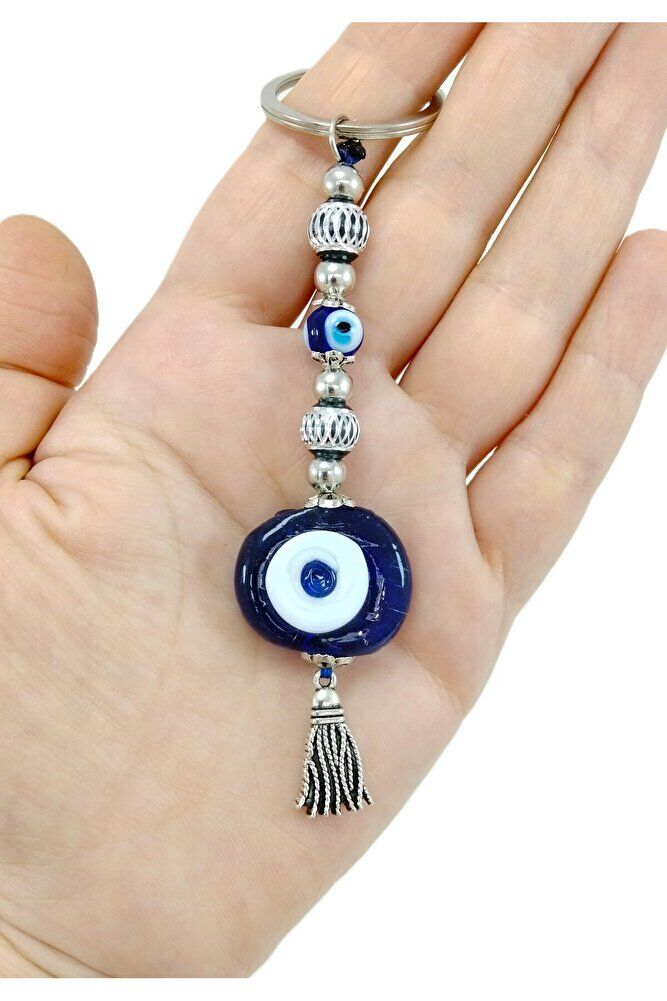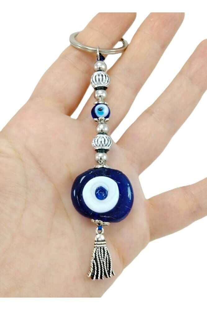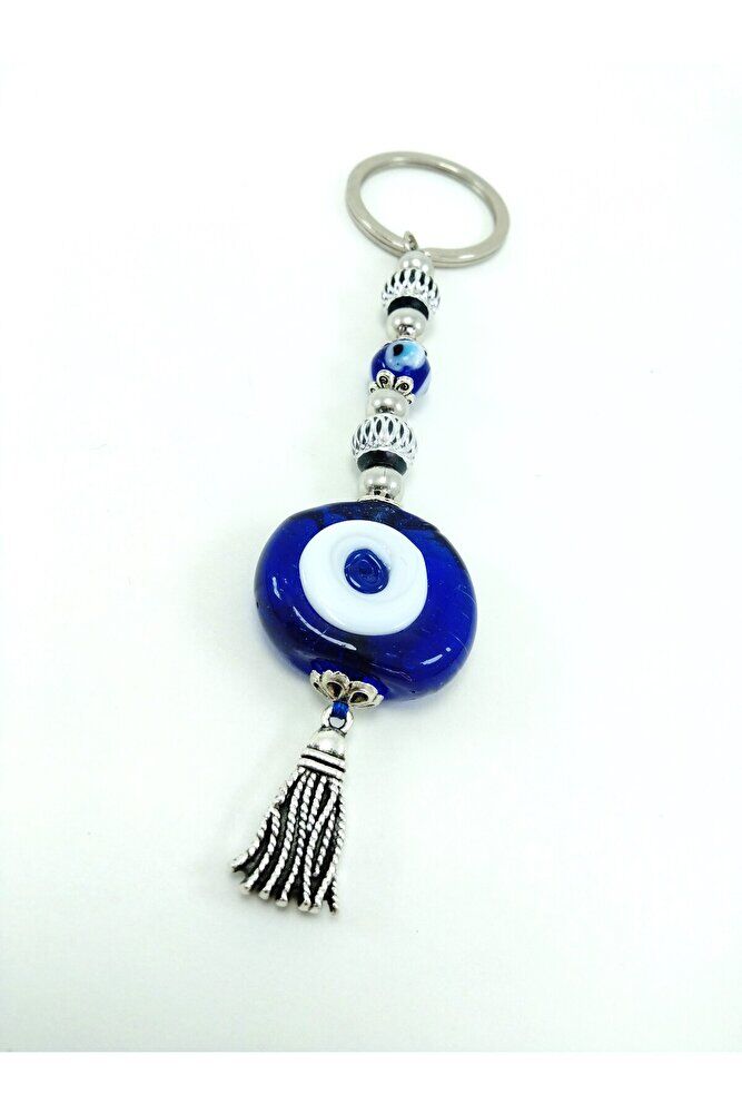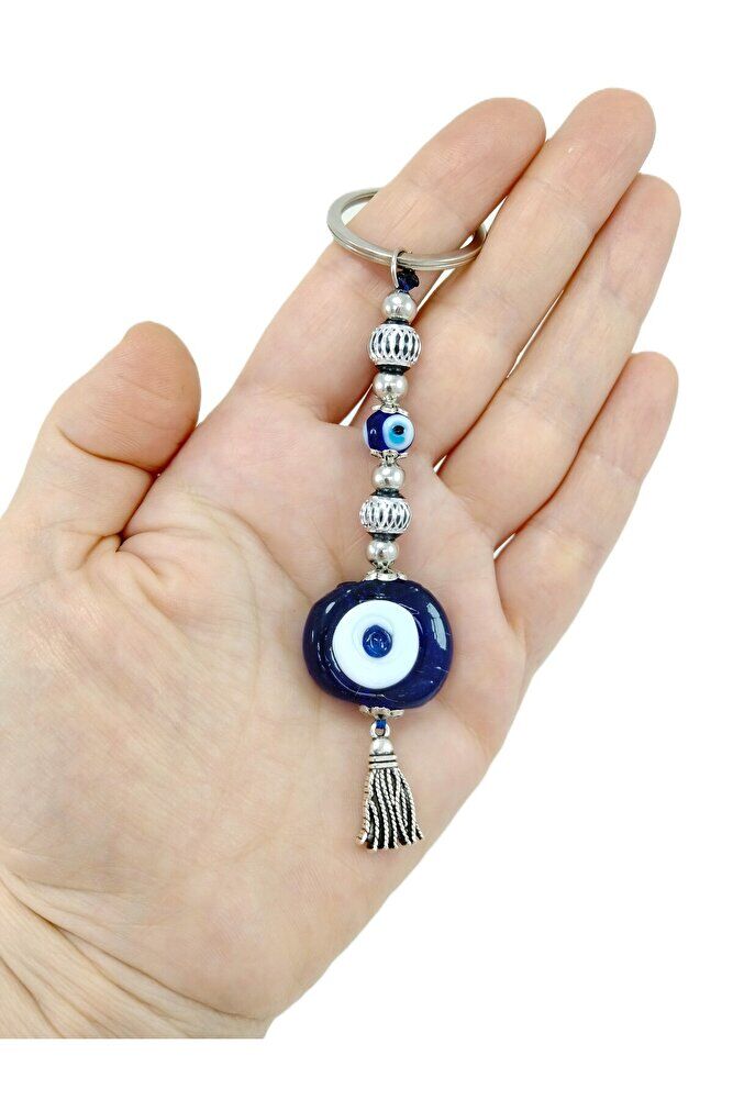 Lacivert Danagözü Nazar Boncuğu Anahtarlık / Araba Dikiz Ayna Süsü Metalik Boncuklu Hediyelik