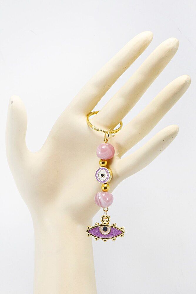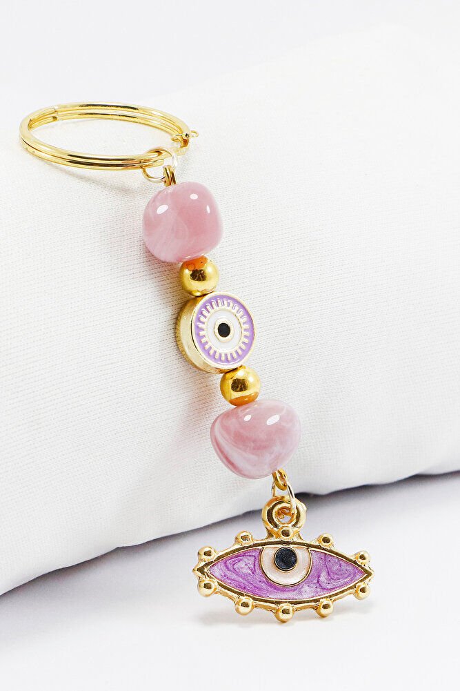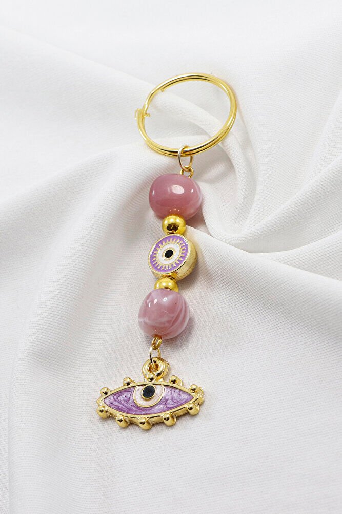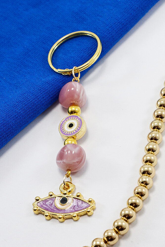Lila Sedefli Çerçeveli Göz Anahtarlık, Nazarlı Hediyelik Çanta Süsü