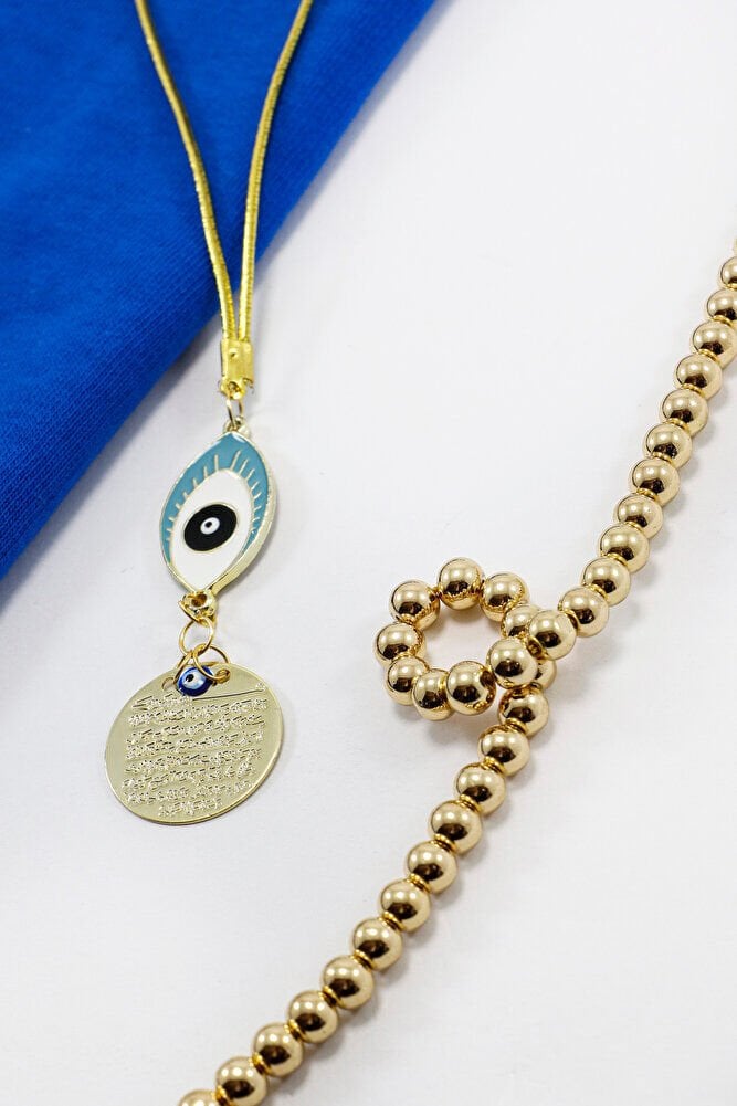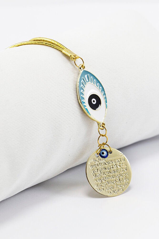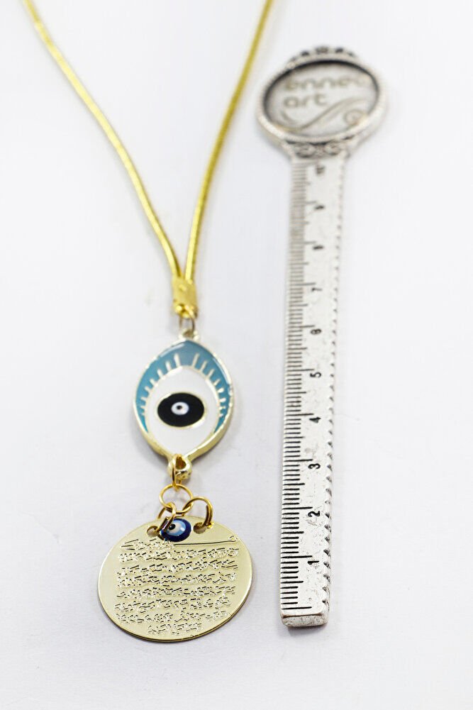 Metal Ayetel Kursi Car Rearview Mirror Ornament with Turquoise Eye Figure, New Car Gift