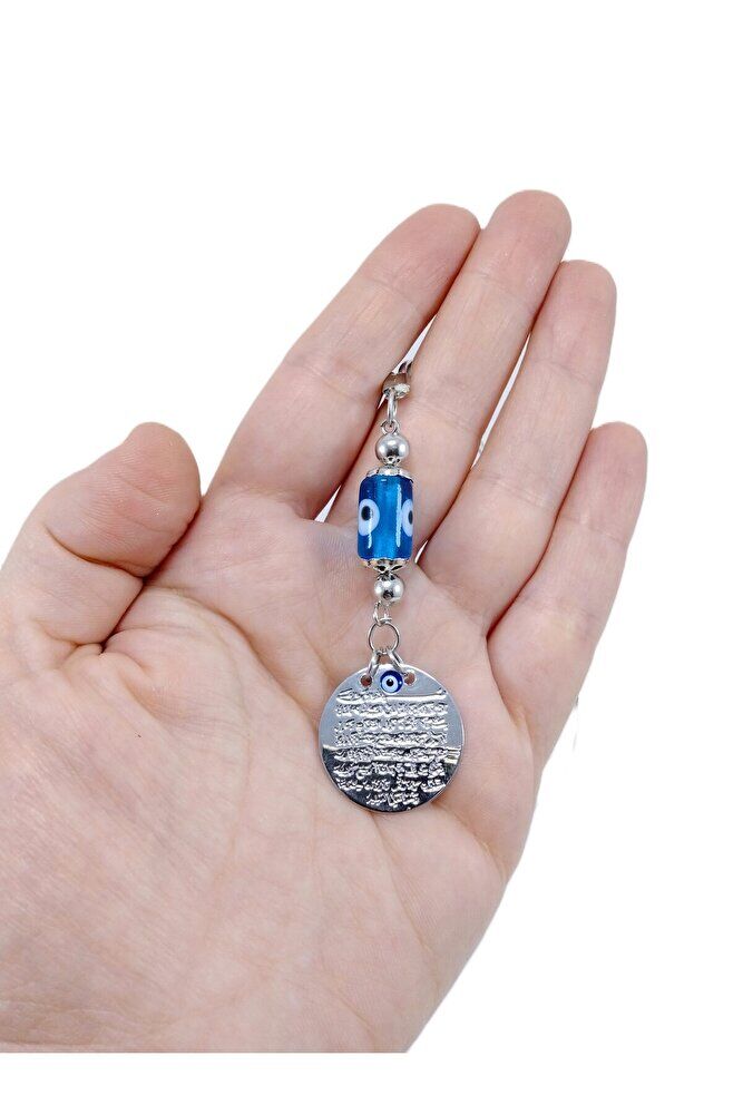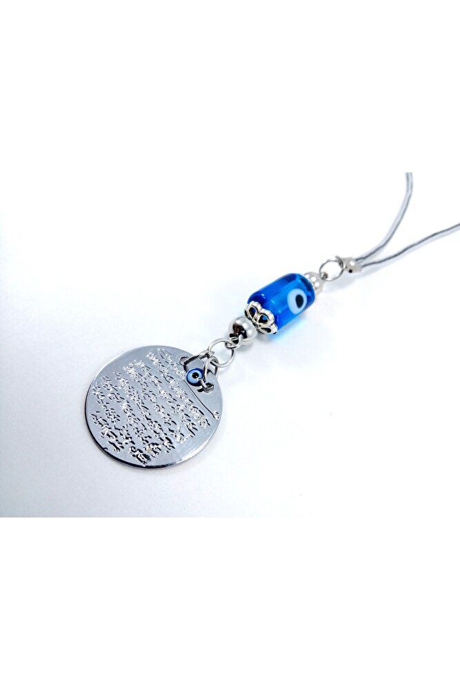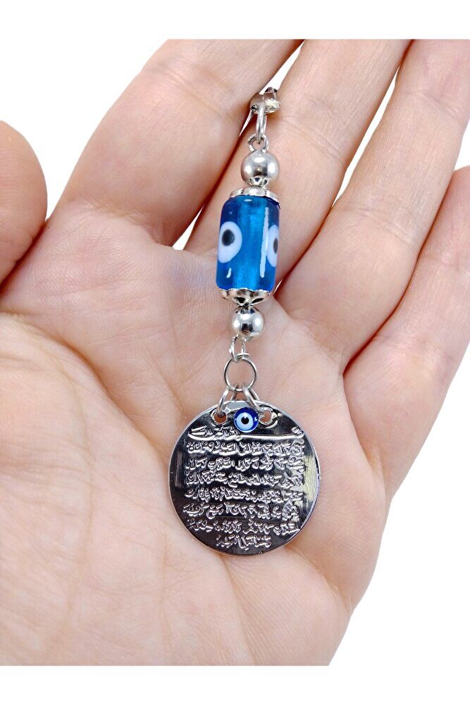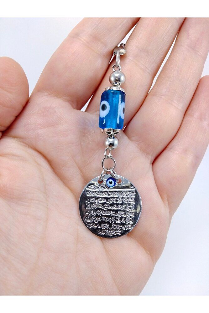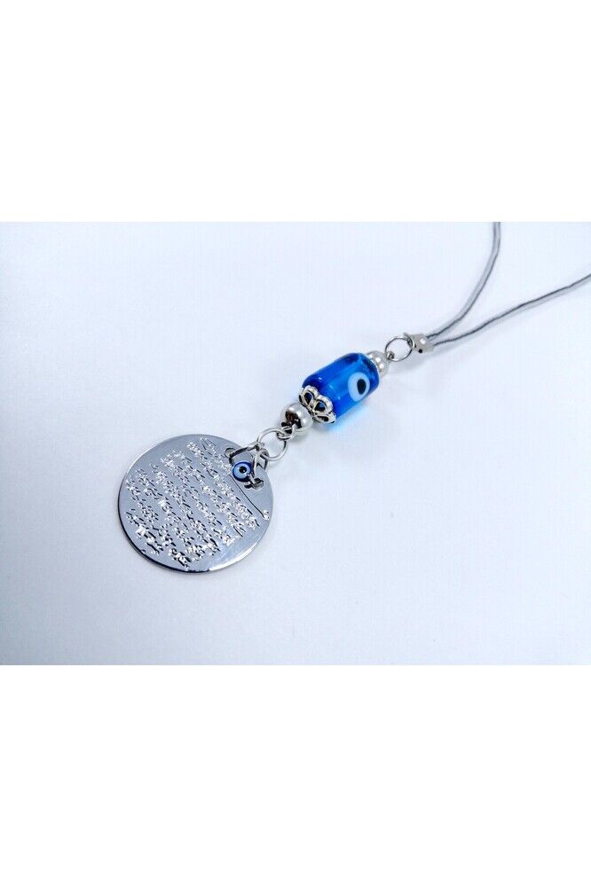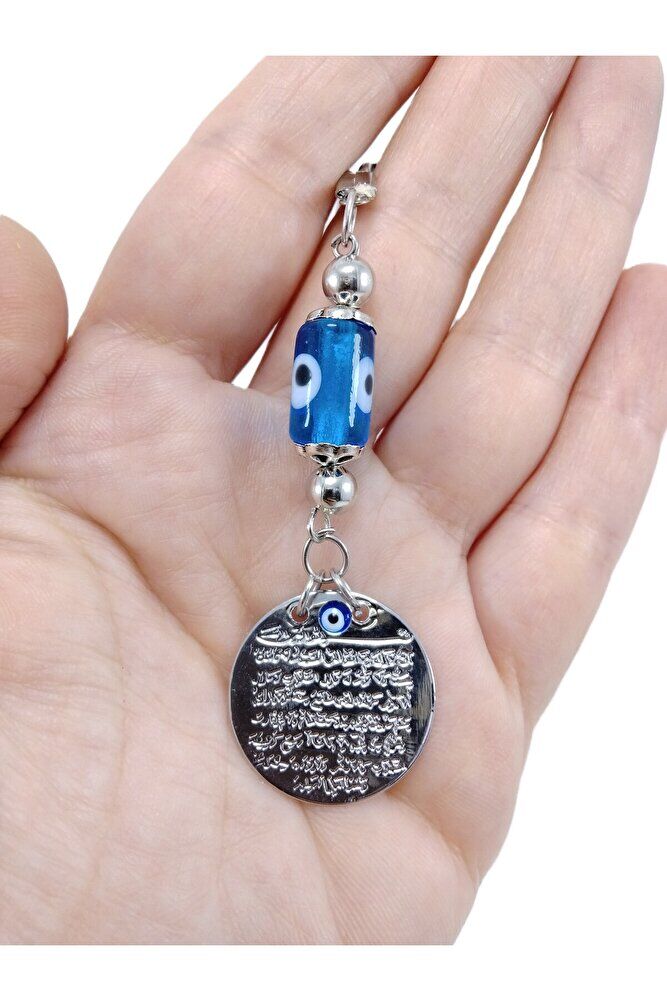 Metal Ayetel Kürsi Nazar Boncuğu Araba Dikiz Ayna Süsü El Yapımı Lüks Aksesuar Turkuaz Boncuklu