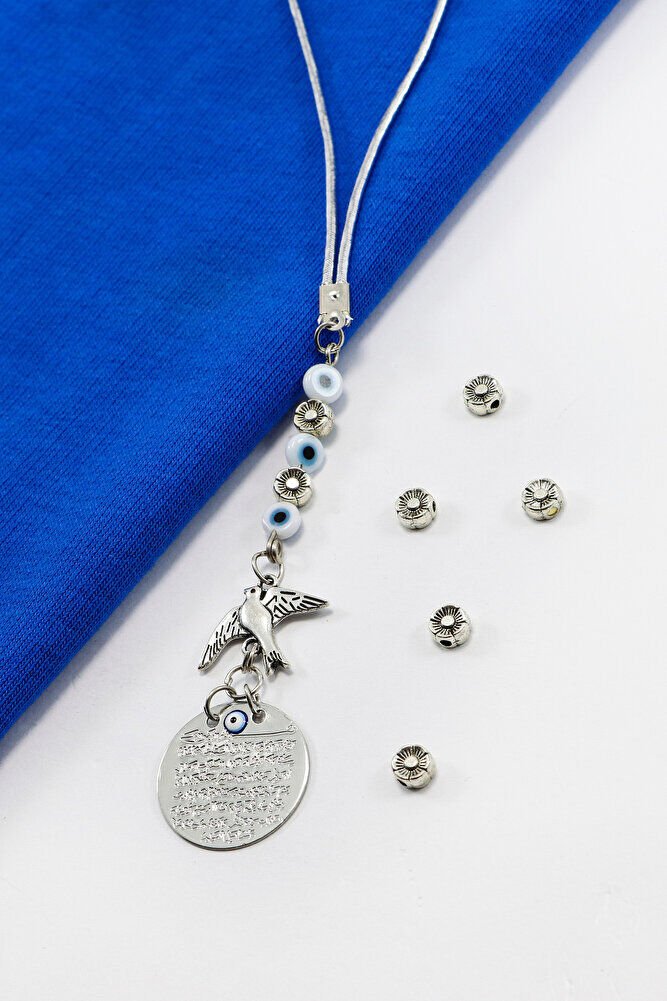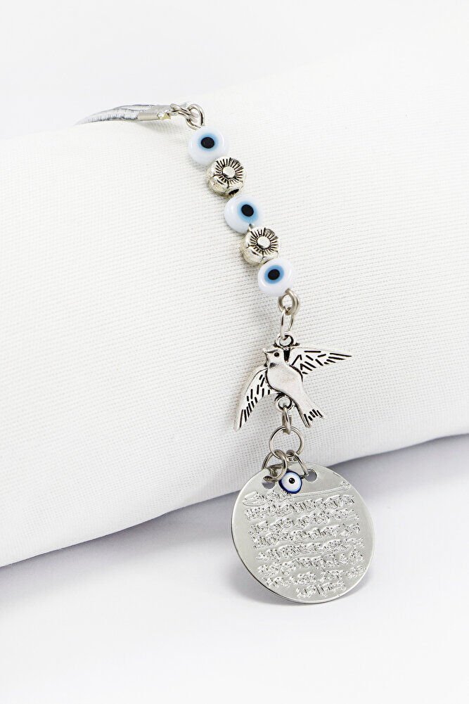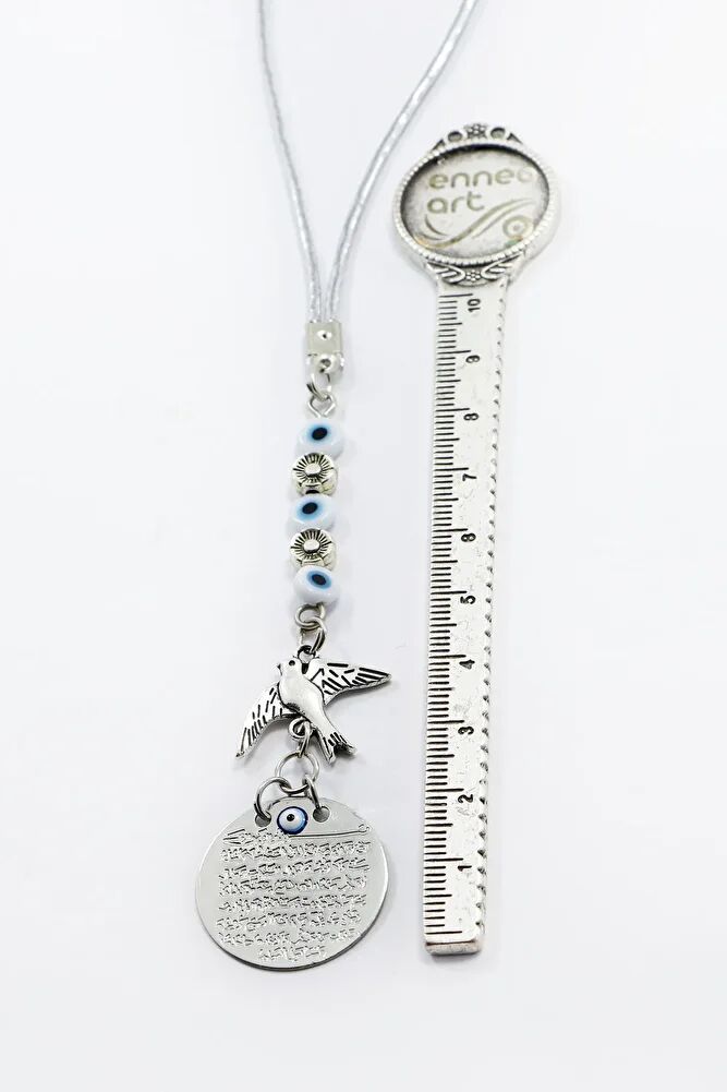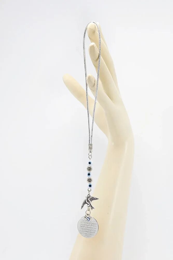 Metal Kuş Çiçek Beyaz Nazar Boncuklu Araba Dikiz Ayna Süsü, Ayetel Kürsi Yeni Araba Hediyesi