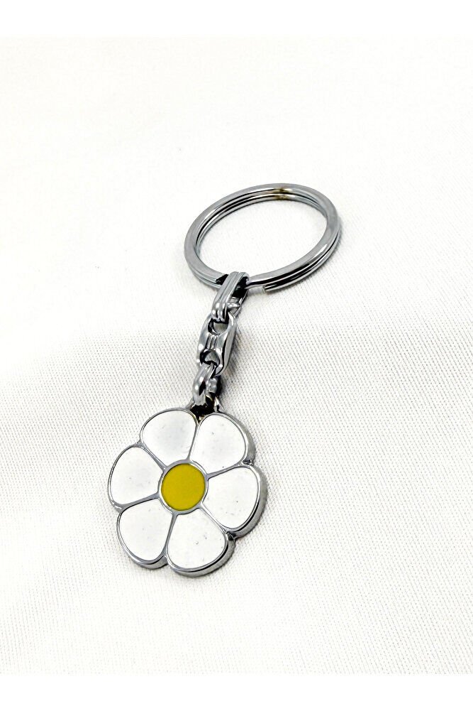 Metal Papatya Figürlü Anahtarlık, Hediyelik Papatyalı Anahtarlık