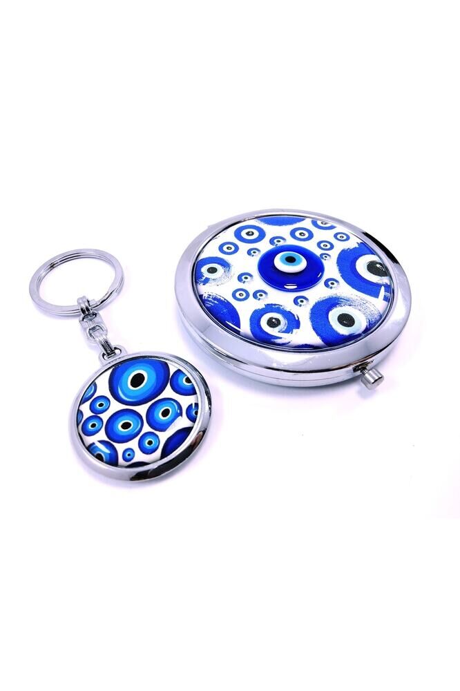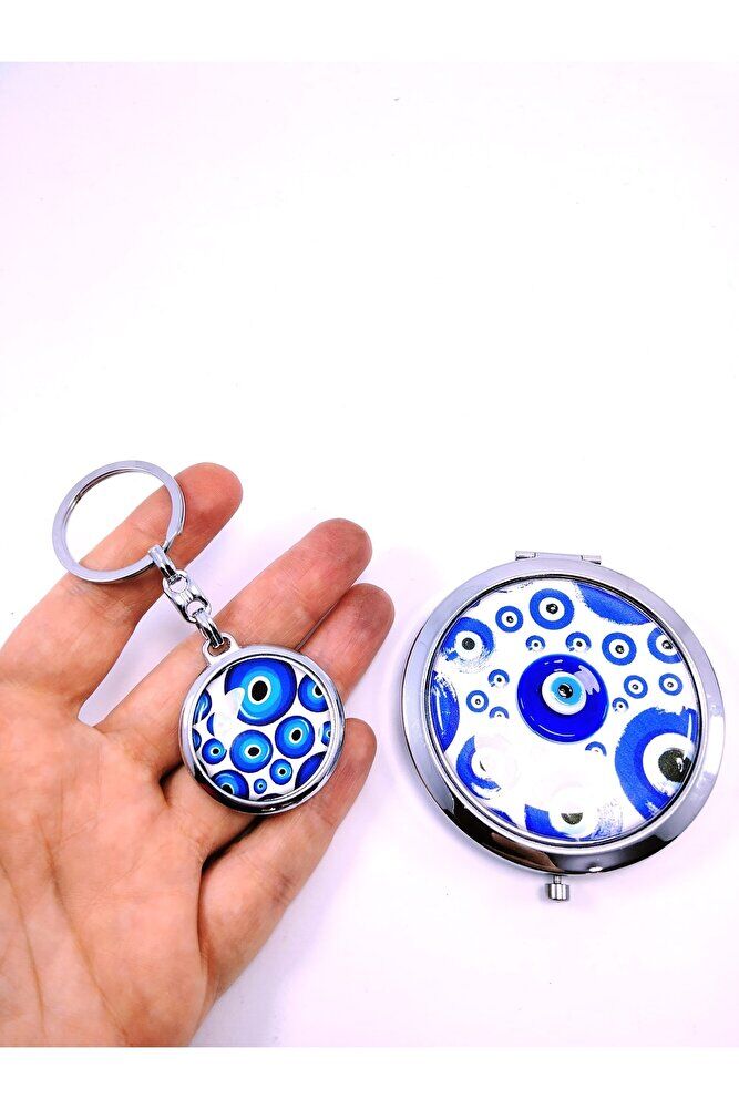 - The keychain, which draws attention with its metal evil eye bead themed design, offers both elegance and meaning together; - This set, which comes with a bag mirror, stands out as a practical accessory option for daily use; - This product, which can be preferred as a gift, offers a special and meaningful gift alternative for your loved ones;