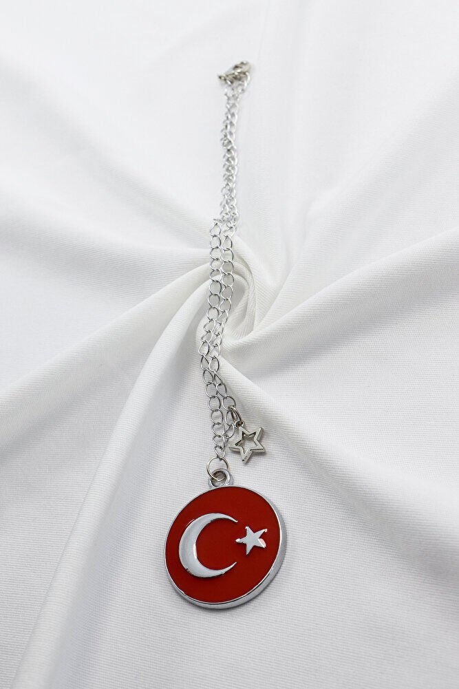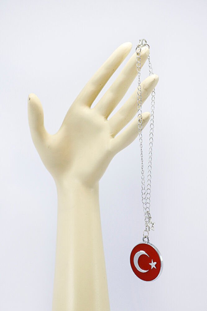 Metal Kırmızı Türk Bayrağı Yıldızlı Zincirli Araba Dikiz Ayna Süsü, Yeni Araba Hediyesi