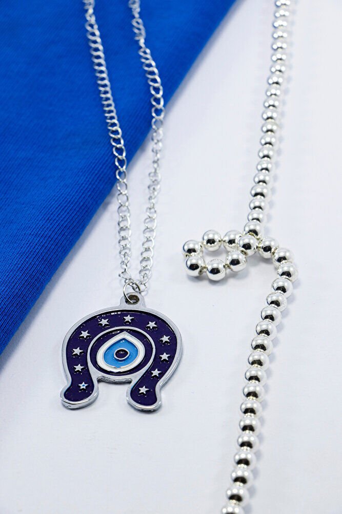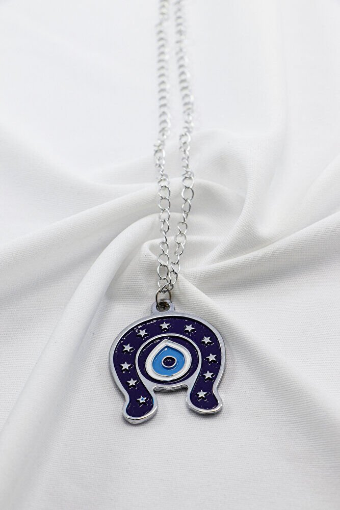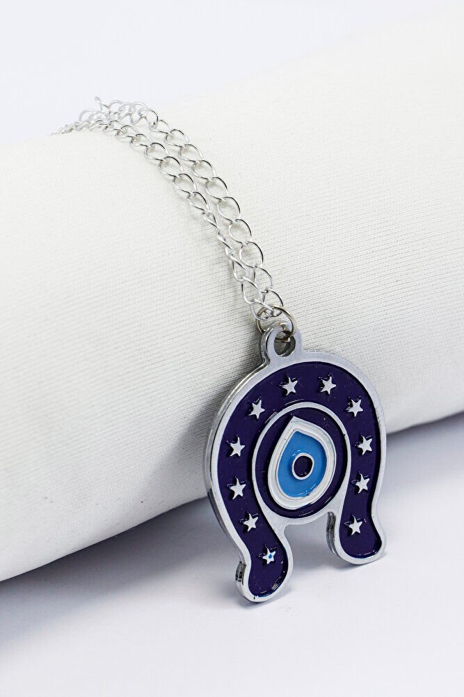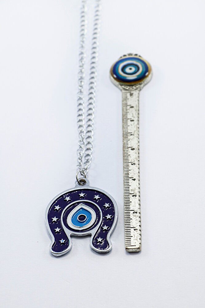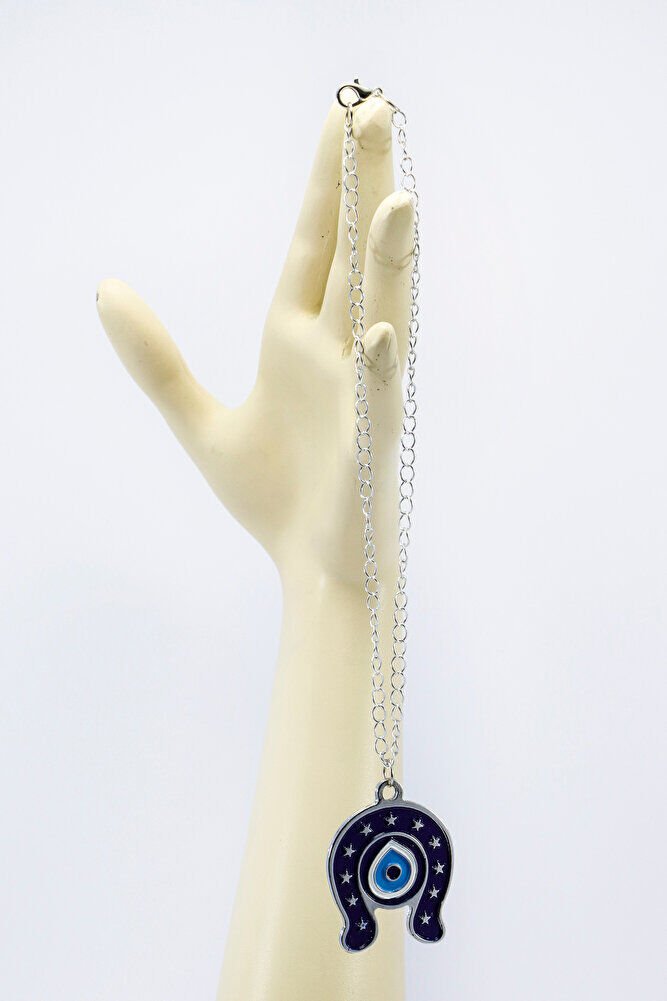 Metal Lacivert Nal Nazar Boncuğu Zincirli Araba Dikiz Ayna Süsü, Yeni Araba Hediyesi