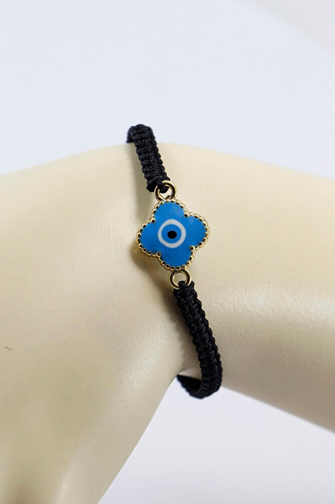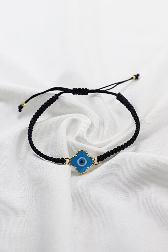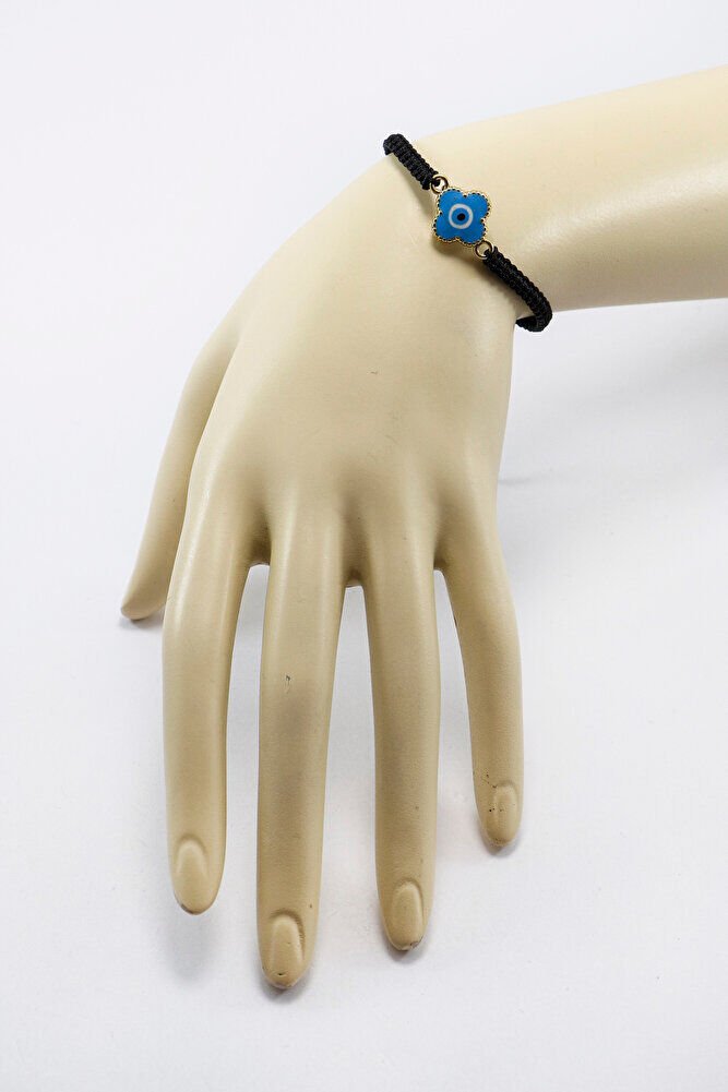 Metal Mavi El Yapımı Mineli Yonca Nazar Boncuğu Ayarlanabilir Asansörlü Bileklik