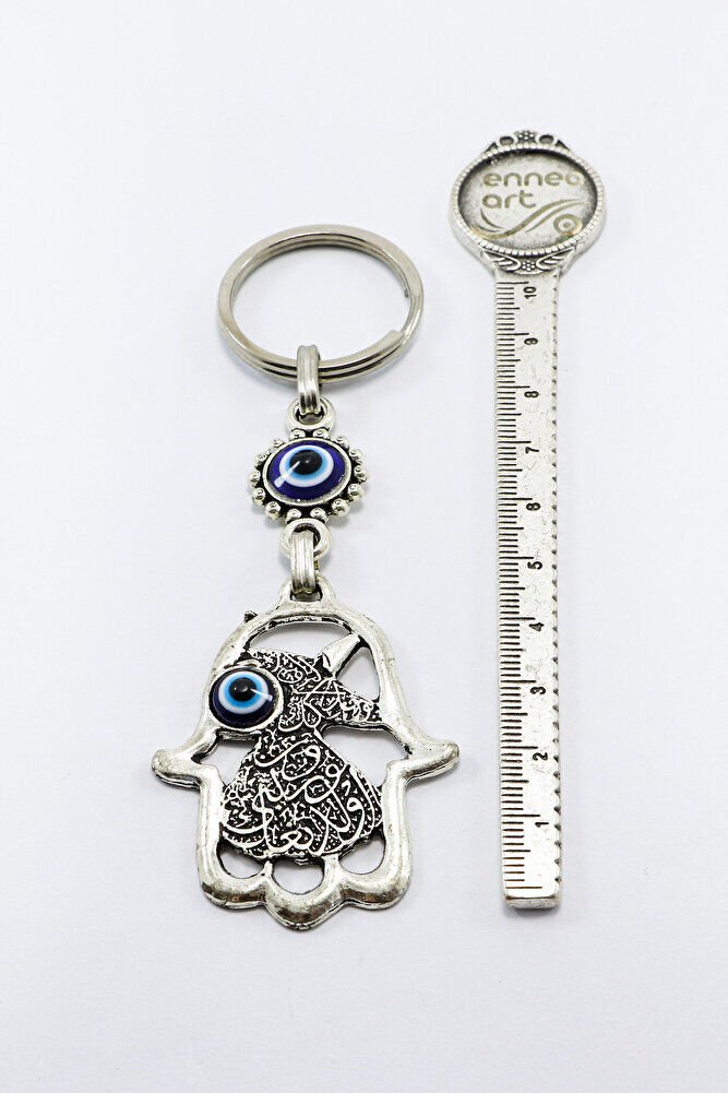 Metal Mevlana Desenli Hamse Eli Anahtarlık, Hediyelik Nazarlı Çanta Süsü