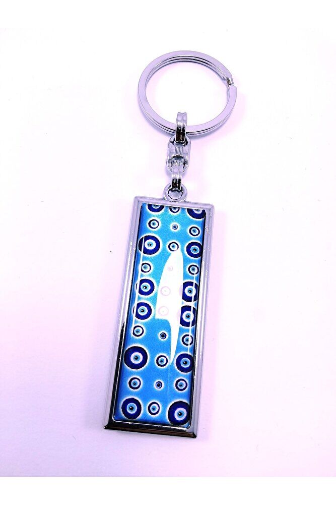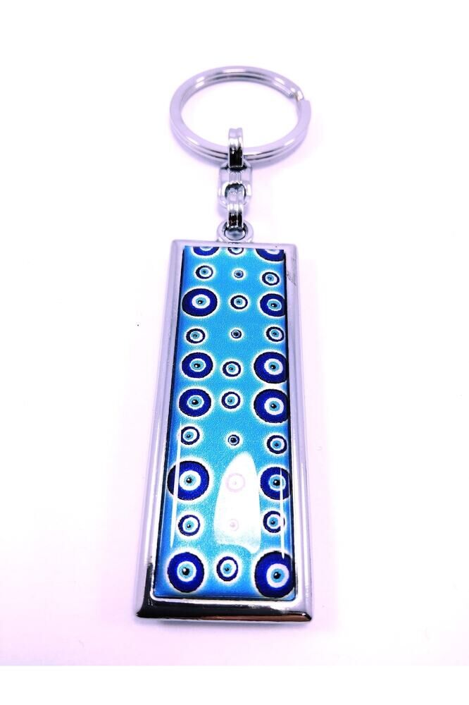 Metal Rectangular Evil Eye Bead Themed Keychain Gift Accessory