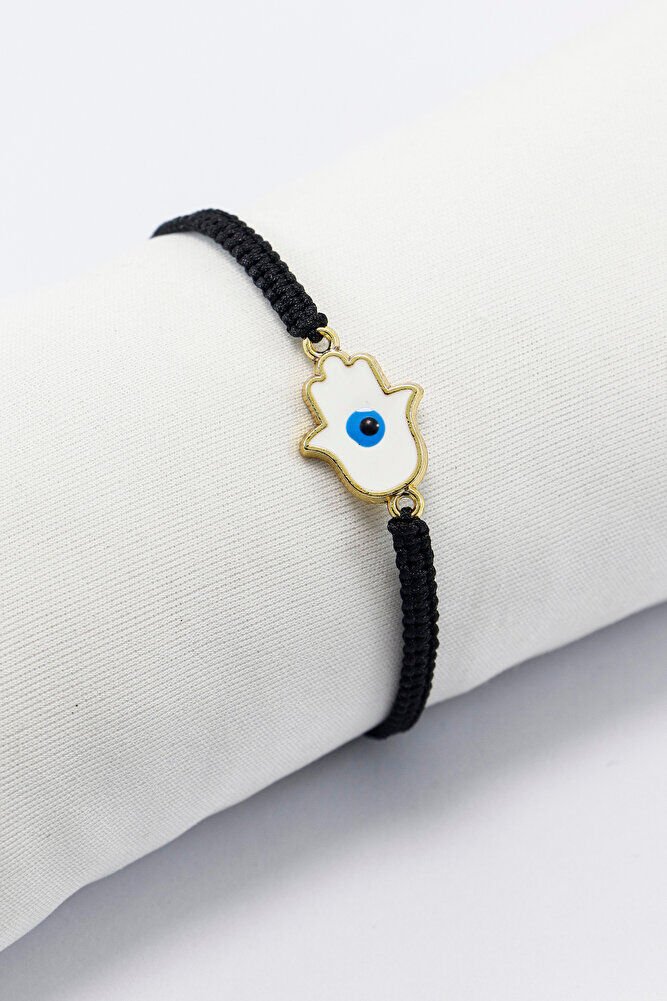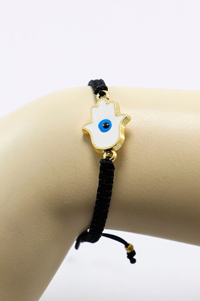 Mineli Metal Beyaz Hamse Fatma Ana Eli Nazar Boncuğu Ayarlanabilir Asansörlü Bileklik