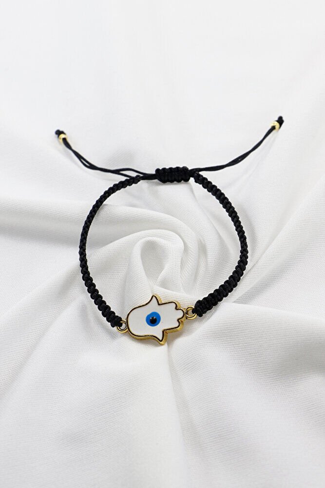 Beyaz mineli hamse eli detayı ile tasarlanan bu ayarlanabilir siyah ipli asansör bileklik, sade ve anlamlı bir şıklık sunar. Hamse eli (Fatma Ana Eli) figürü, kültürel olarak korunma, bereket ve iyi dileklerle ilişkilendirilen güçlü bir sembol olarak bilinir. Beyaz mine kaplama, tasarıma zarif ve temiz bir görünüm kazandırır.