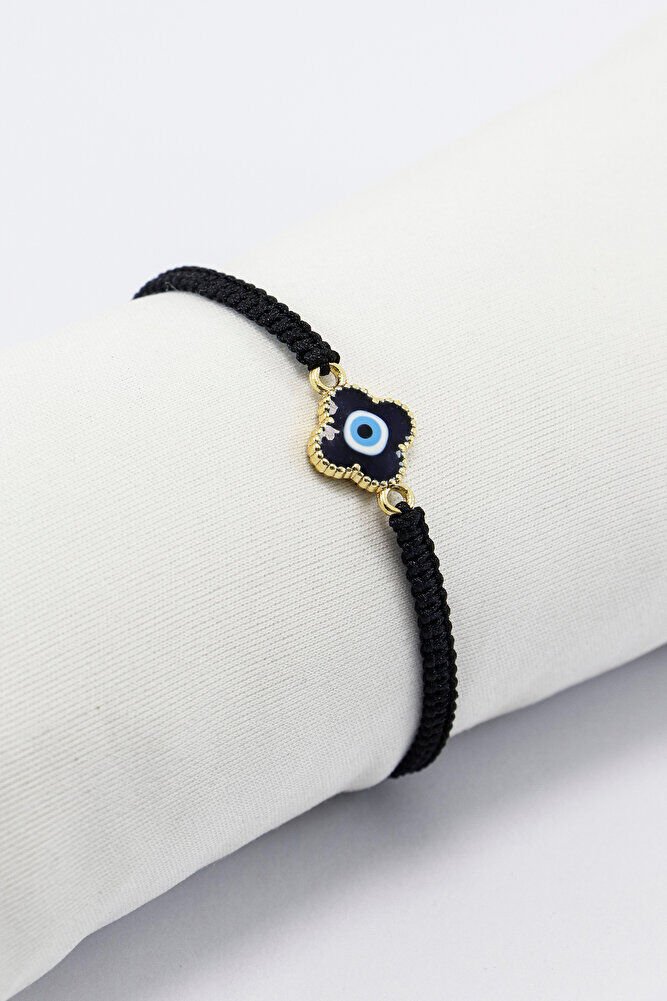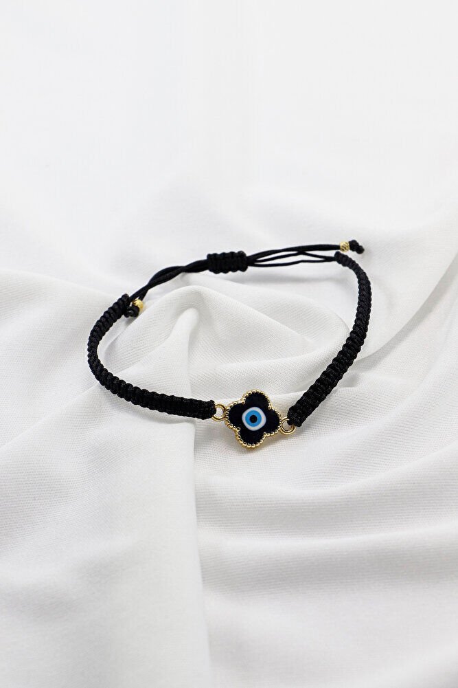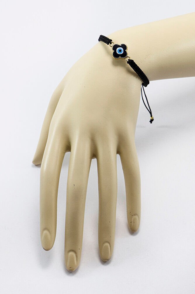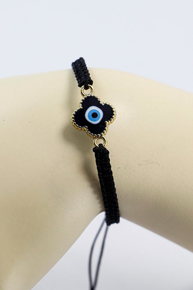 Mineli Metal Mavi Nazar Boncuğu Siyah Ayarlanabilir Asansörlü Bileklik, Hediyelik Bileklik