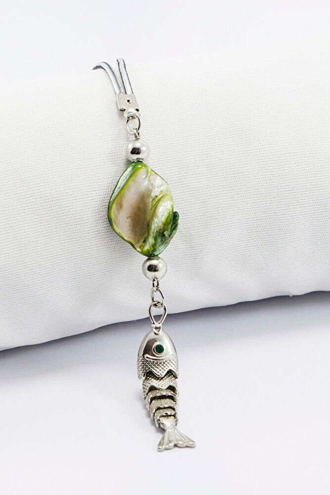 Sedef Yeşil Taşlı Ve Gümüş Kaplama Yeşil Parlak Taşlı Balık Araba Dikiz Ayna Süsü Hediyelik