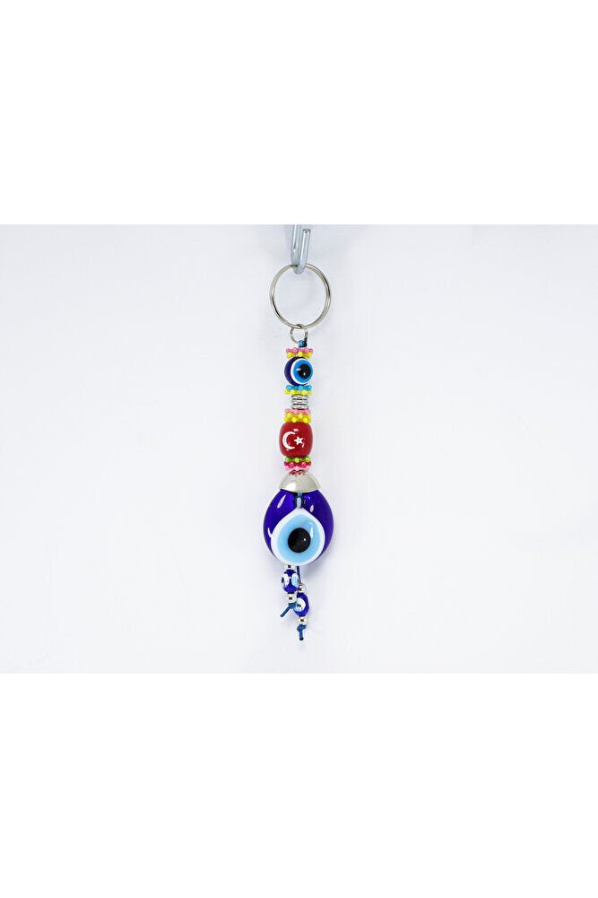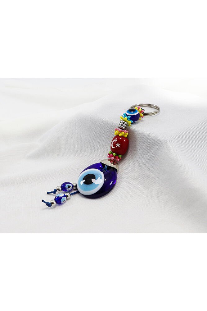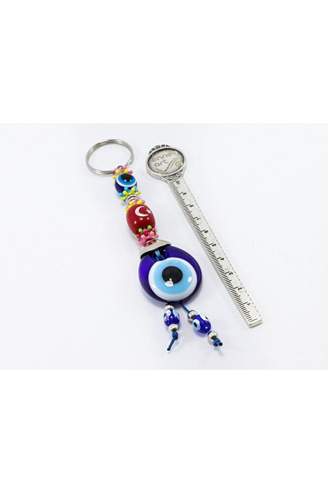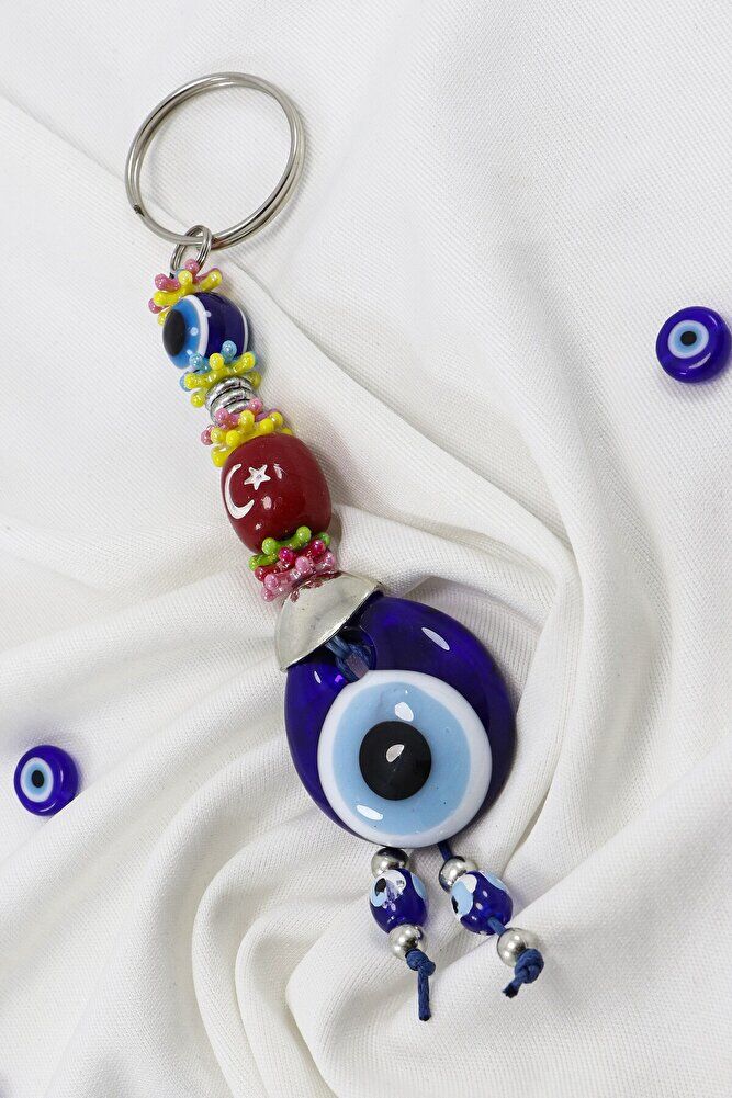 Navy Blue, Crescent Star Turkish Flag Handmade Glass Evil Eye Beaded Keychain