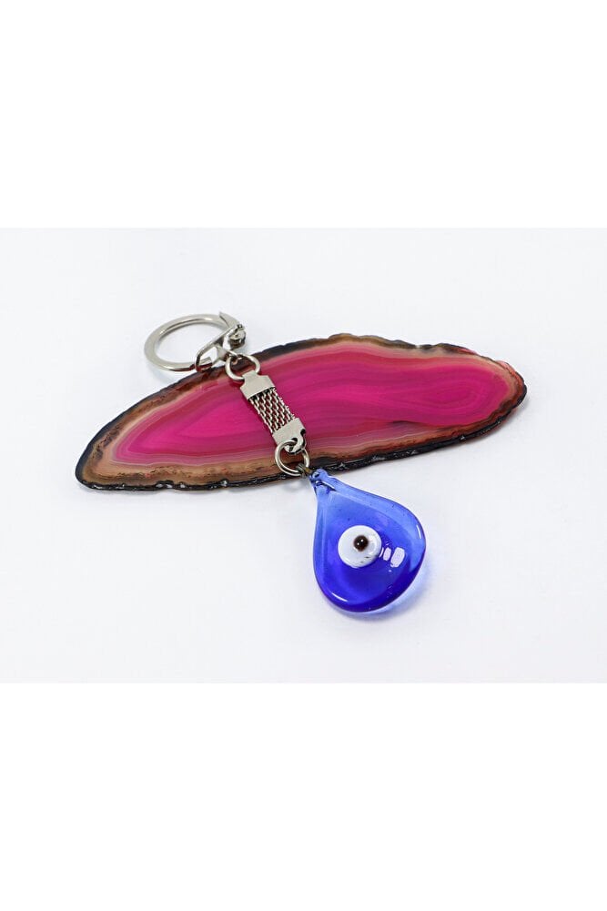 Double-sided drop glass evil eye bead is double-sided.; It can be used both as a keychain and bag ornament.;