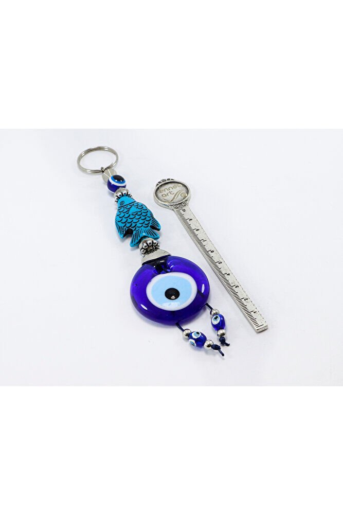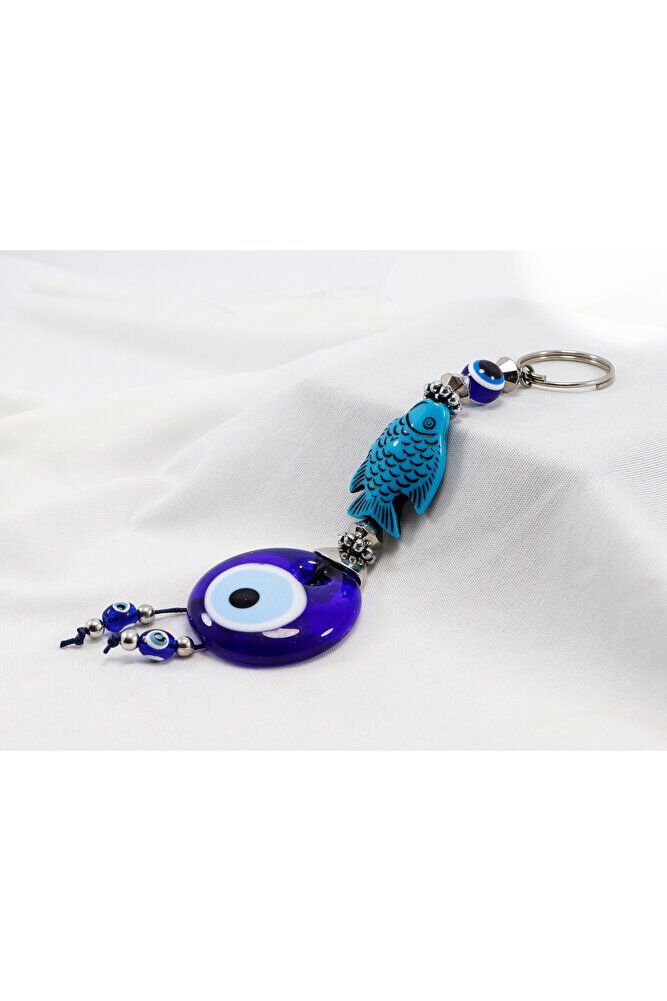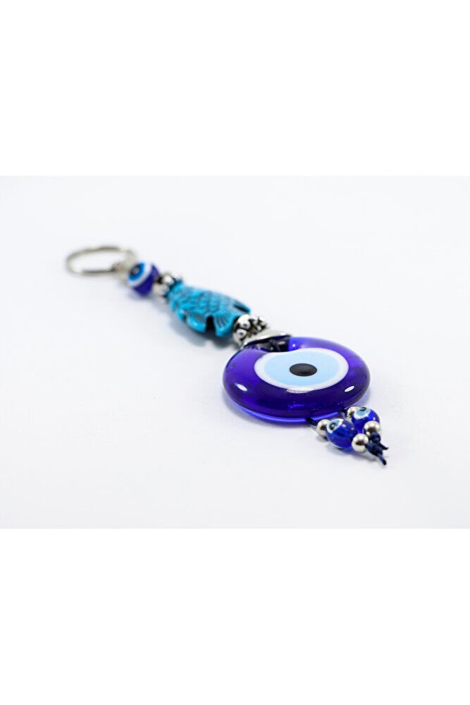 Navy Blue, Fish Figured Handmade Glass Evil Eye Beaded Keychain