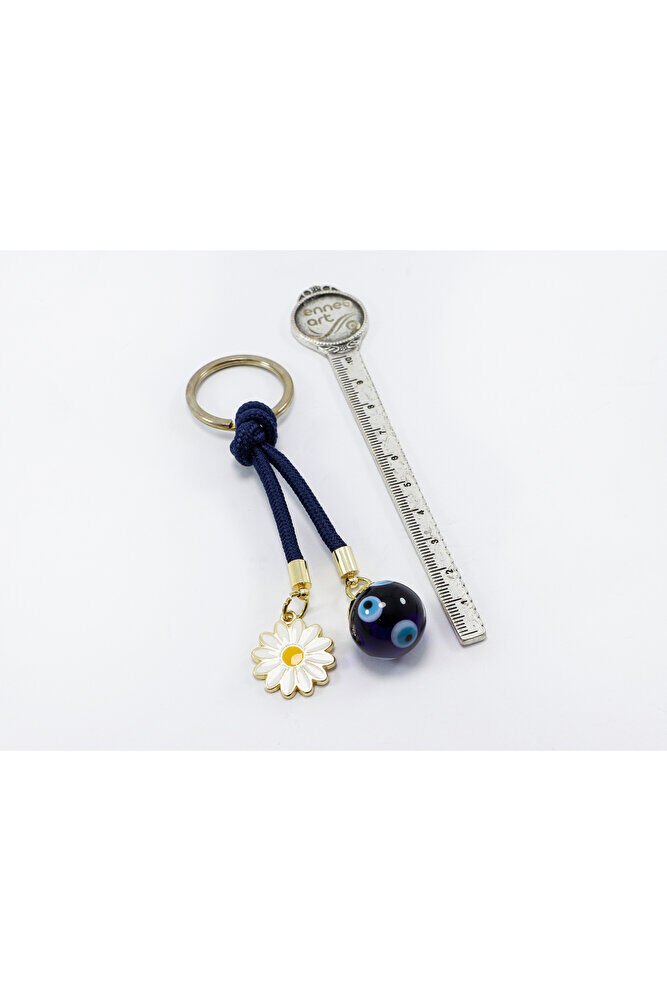 THE PRODUCT IS SHIPPED AS A SINGLE KEYRING.; OTHER COLORS ARE AVAILABLE ON THE PANEL.; Evil eye beads are handmade glass.; Daisy is single-sided and made of metal.;