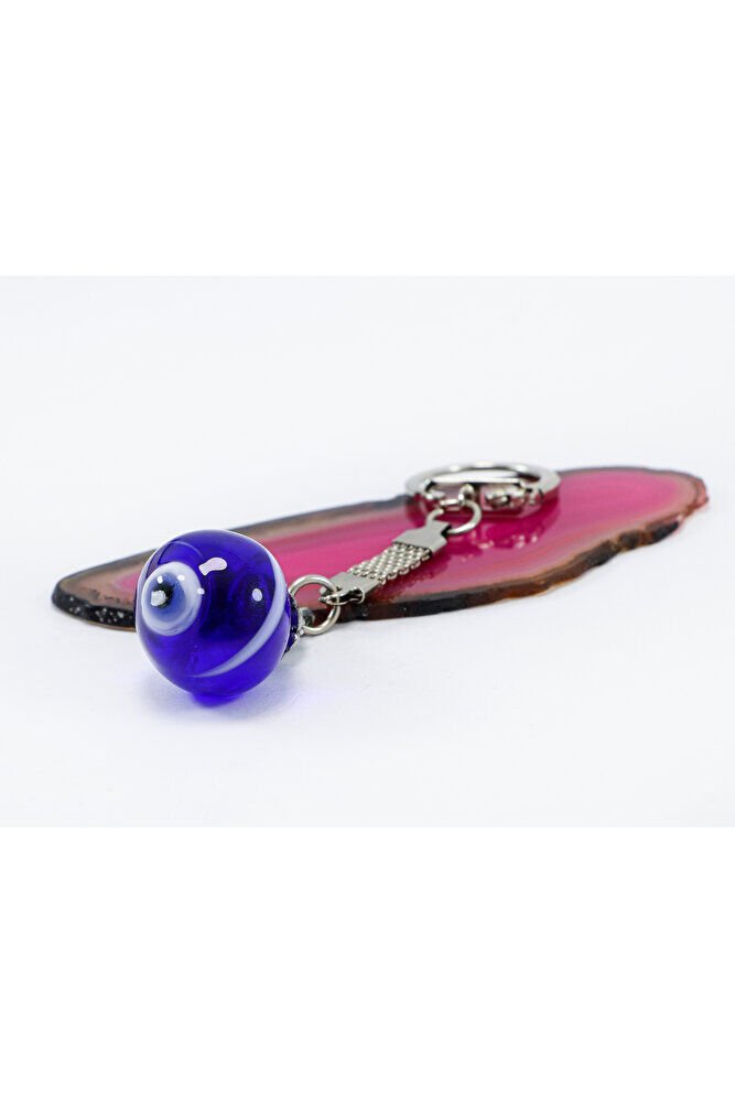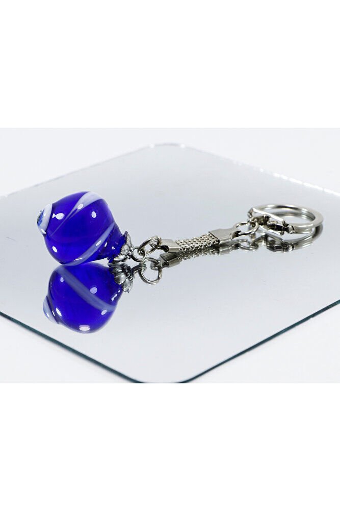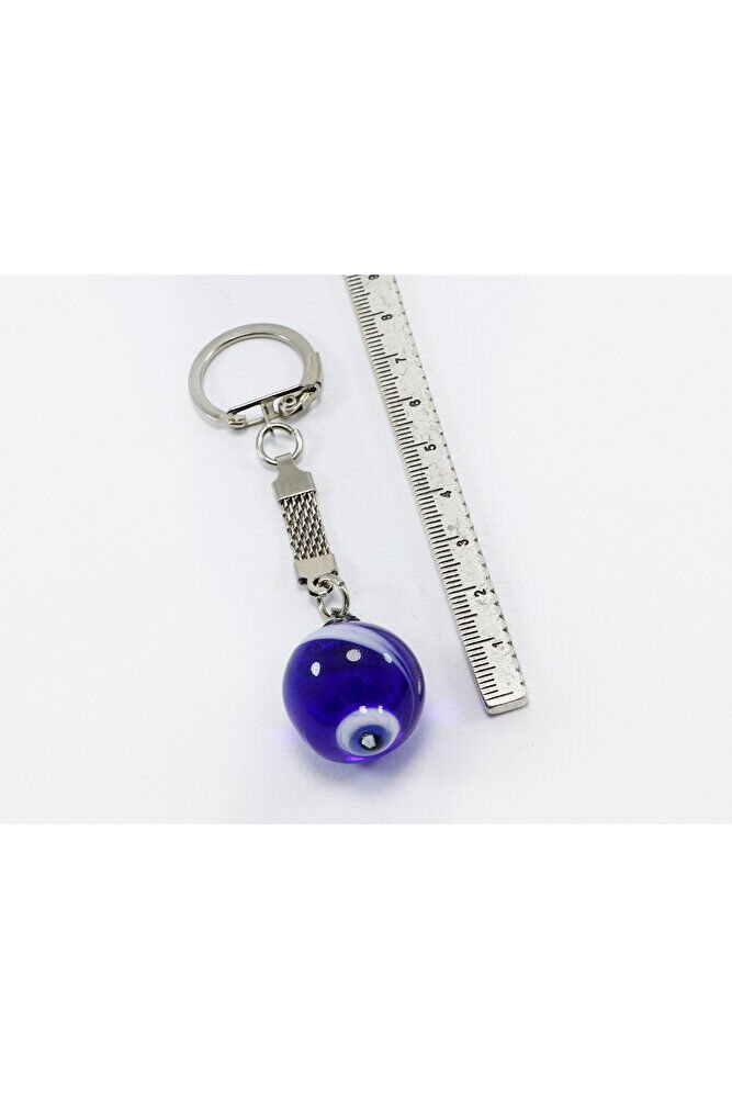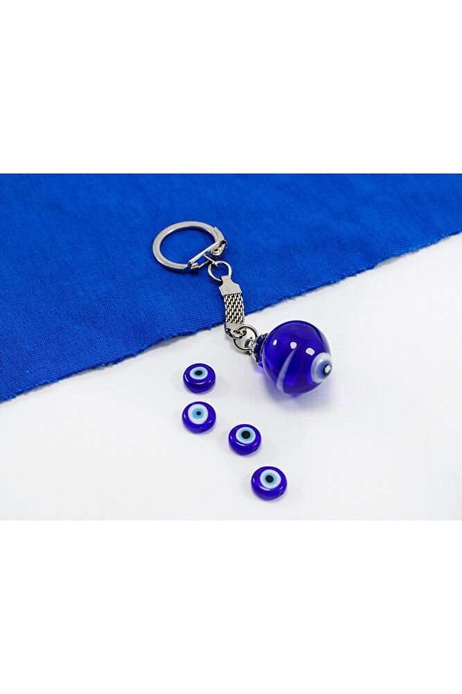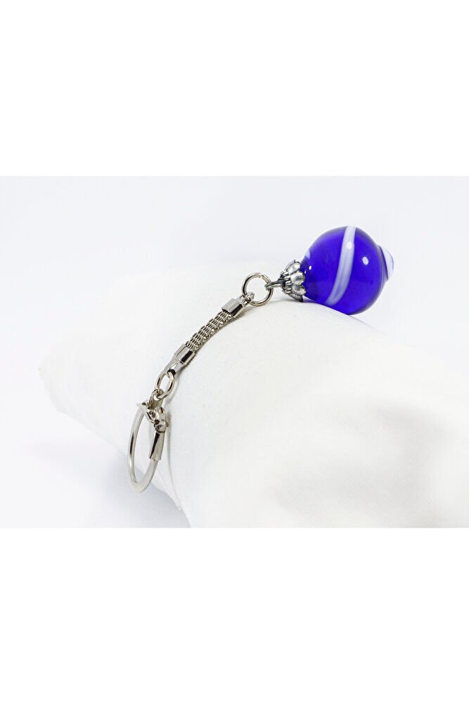 The sphere striped glass evil eye bead is double-sided.; It can be used both as a keychain and bag ornament.;