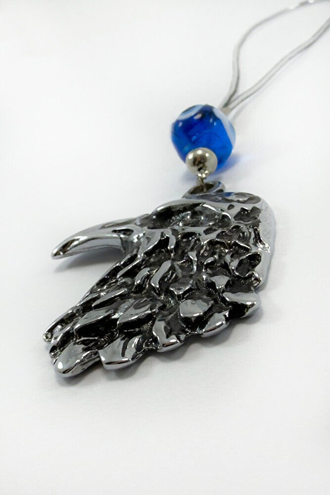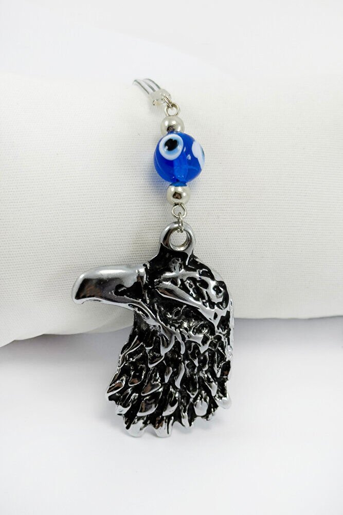 Lacivert El Yapımı Cam Nazar Boncuklu Eskitme Metal Kartal Araba Dikiz Ayna Süsü