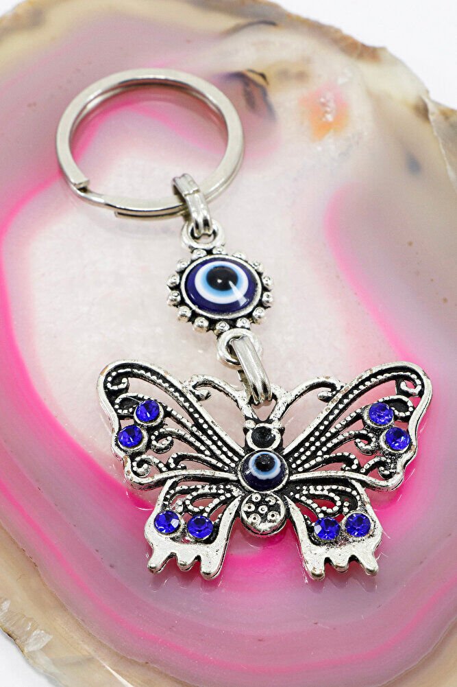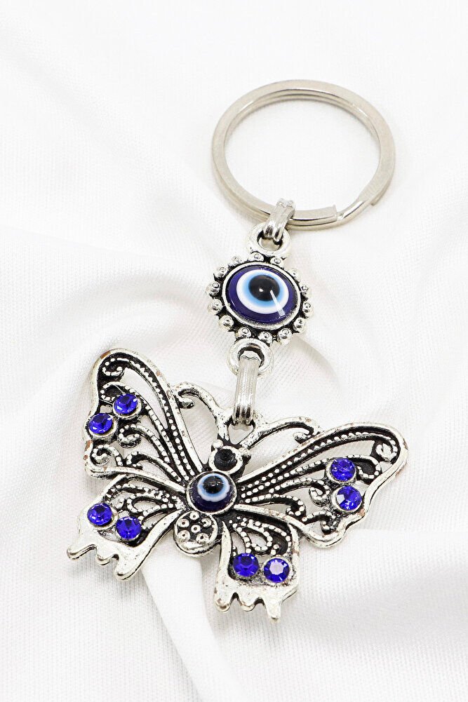 Navy Blue Shiny Stone Metal Butterfly Keychain, Butterfly Gift