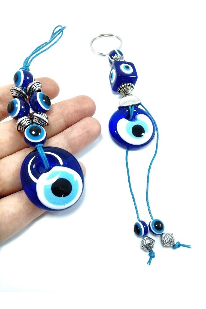 Ürünler el yapımıdır. ; Cam nazar boncukları 3-3,5 cm 'dir. ; El yapımı oldukları için ufak farklılık ve düzensizlikler olasıdır. ; Bu el yapımı cam nazar boncukları ile kendinizi ve sevdiklerinizi negatif enerjiden koruyun. ; Türk kültüründe geleneksel olarak"nazar boncuğu" olarak bilinen bu güçlü sembolün kötülükleri savuşturduğuna ve iyi şans getirdiğine inanılır. ; Her cam boncuk yetenekli zanaatkarlar tarafından titizlikle işlenir ve bu her parçayı benzersiz kılar.Nazar boncuğunu, müşterilerimize duvar süsü, anahtarlık, araba aksesuarı, kapı süsü, magnet gibi farklı formatlarda sunuyoruz. ; Pozitif enerji getirmek ve nazardan korumak için evinize, arabanıza veya ofisinize asın.Nazar tılsımının dünyadaki çeşitli kültürlerde farklı isimleri vardır. ; Arapça'da "aynal-hasud" veya "haset gözü", Yunanca'da "mati"veya "????" olarak bilinir. ; Adı ne olursa olsun, bu koruyucu nazar boncuğunun gücüne olan inanç evrenseldir.;