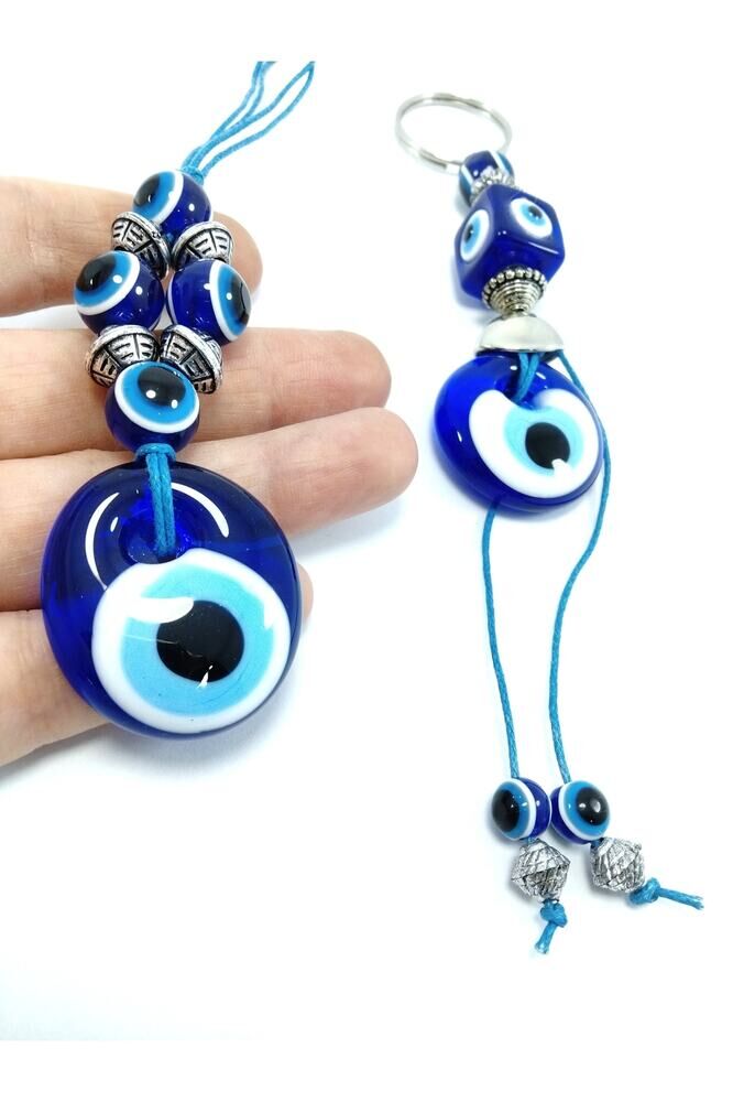 Nazar Boncuğu Araba Dikiz Ayna Süsü El Yapımı Cam Hediyelik Ikili Set
