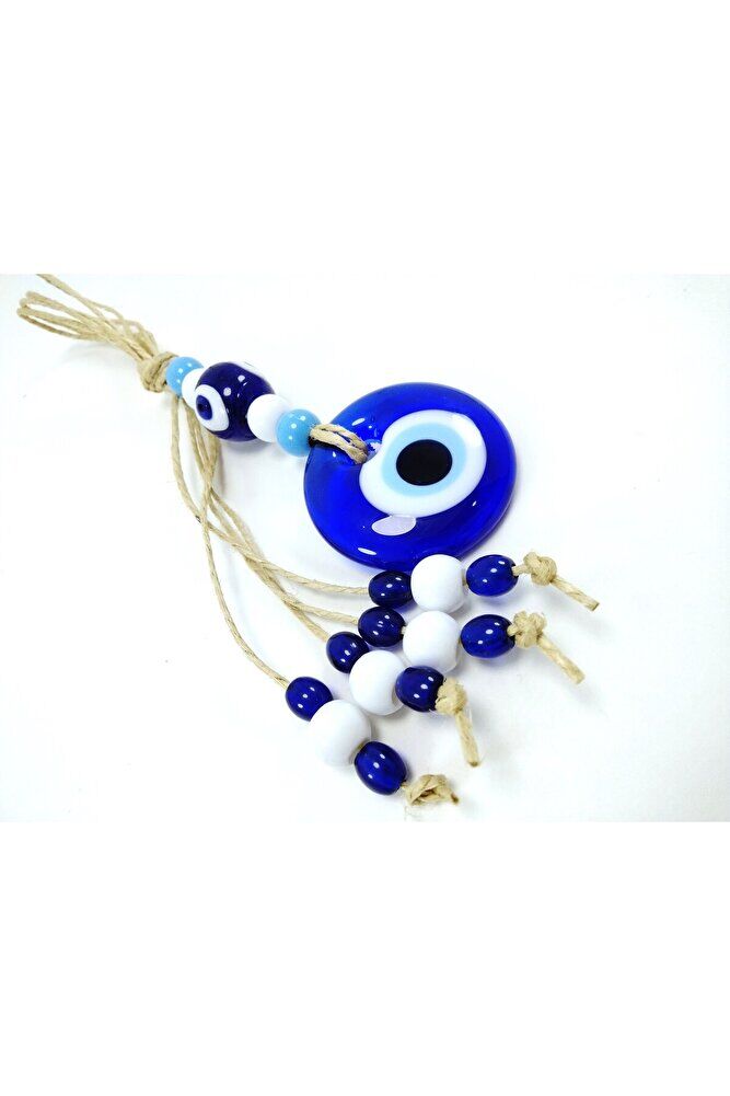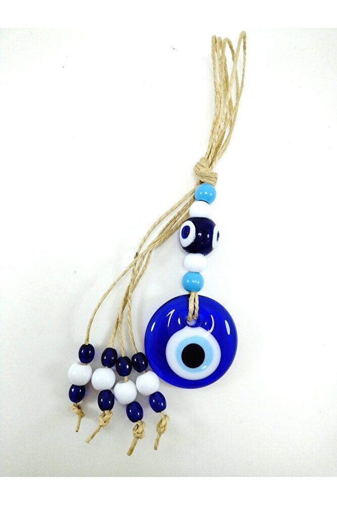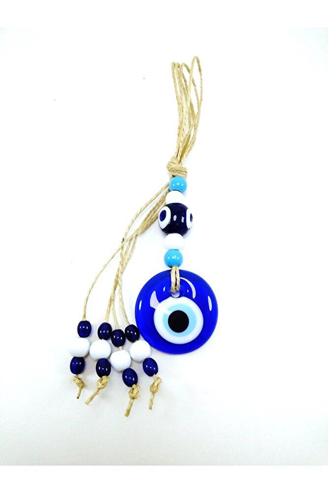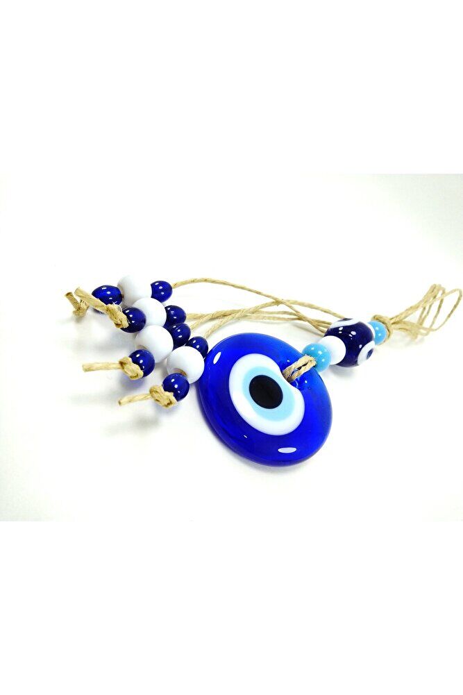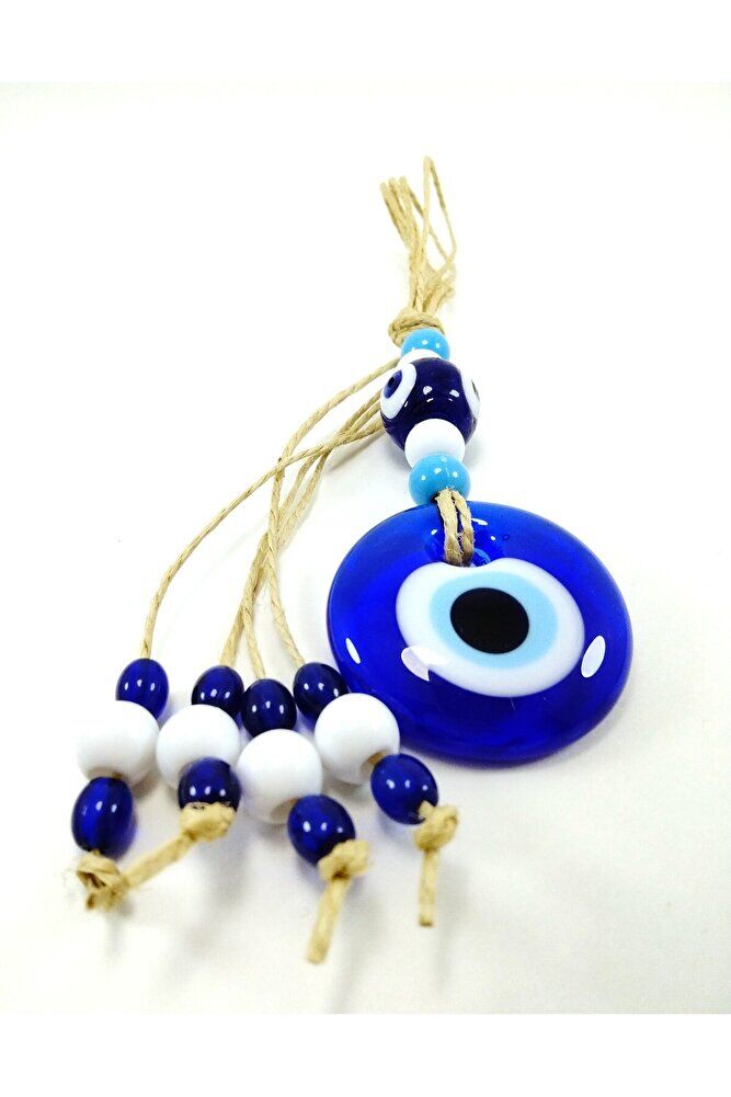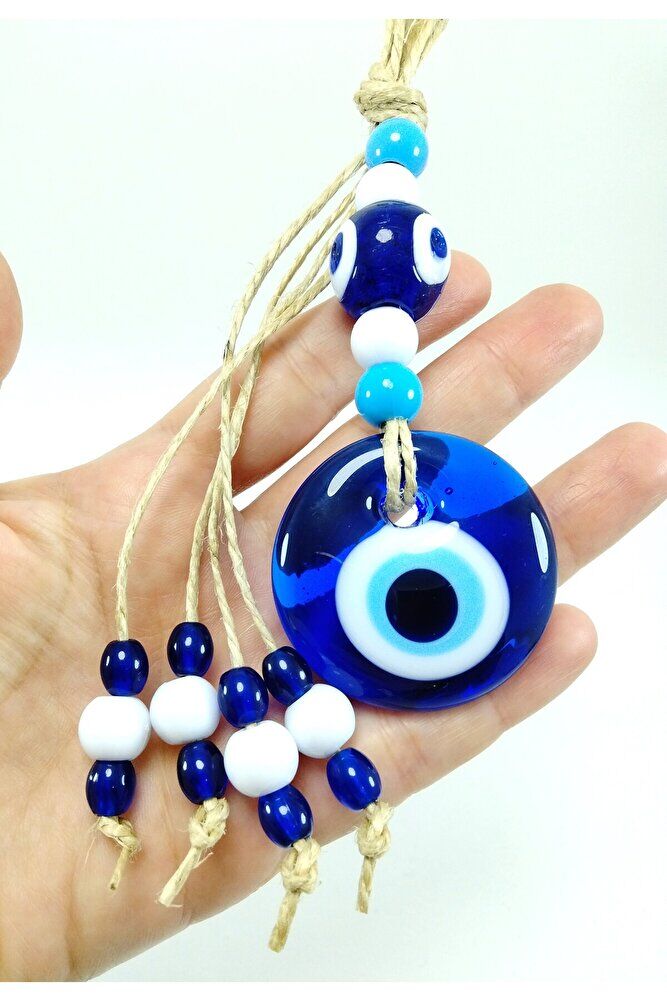 Ürün el yapımıdır. ; Büyük cam boncuk 4-4,5 cm boyutundadır. ; Cam boncuklar el yapımı oldukları için ufak farklılık ve düzensizlikler olasıdır. ; Türk kültüründe geleneksel olarak"nazar boncuğu" olarak bilinen bu güçlü sembolün kötülükleri savuşturduğuna ve iyi şans getirdiğine inanılır.Her cam boncuk yetenekli zanaatkarlar tarafından titizlikle işlenir ve bu her parçayı benzersiz kılar.Nazar boncuğunu, müşterilerimize duvar süsü, anahtarlık, araba aksesuarı, kapı süsü, magnet gibi farklı formatlarda sunuyoruz.Pozitif enerji getirmek ve nazardan korumak için evinize, arabanıza veya ofisinize asın.Nazar tılsımının dünyadaki çeşitli kültürlerde farklı isimleri vardır. ; Arapça'da "aynal-hasud" veya "haset gözü", Yunanca'da "mati" olarak bilinir. ; Adı ne olursa olsun nazar boncuğunun gücüne olan inanç evrenseldir.;