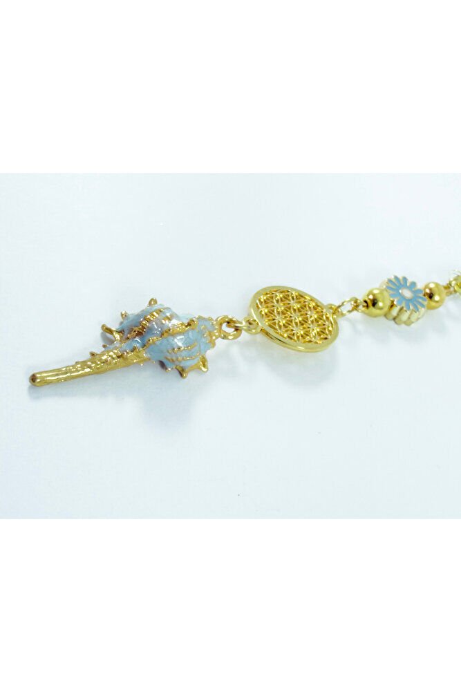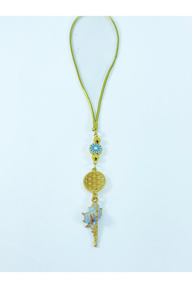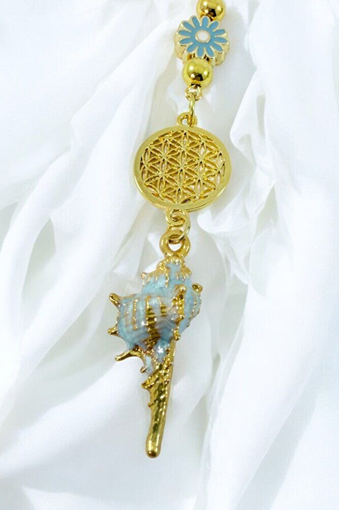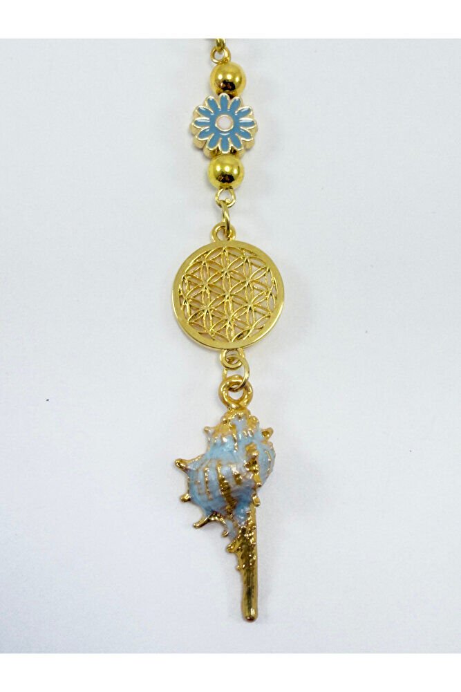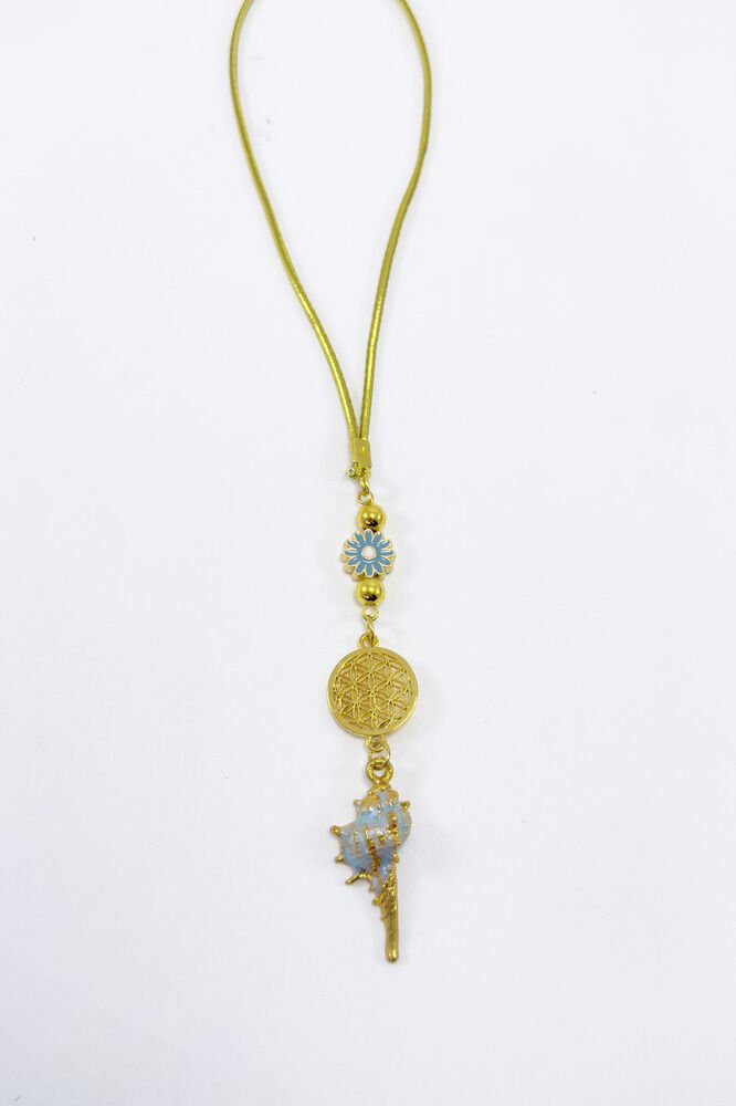 New Car Gift, Pastel Mint Green Metal Seashell Flower of Life Rearview Mirror Ornament